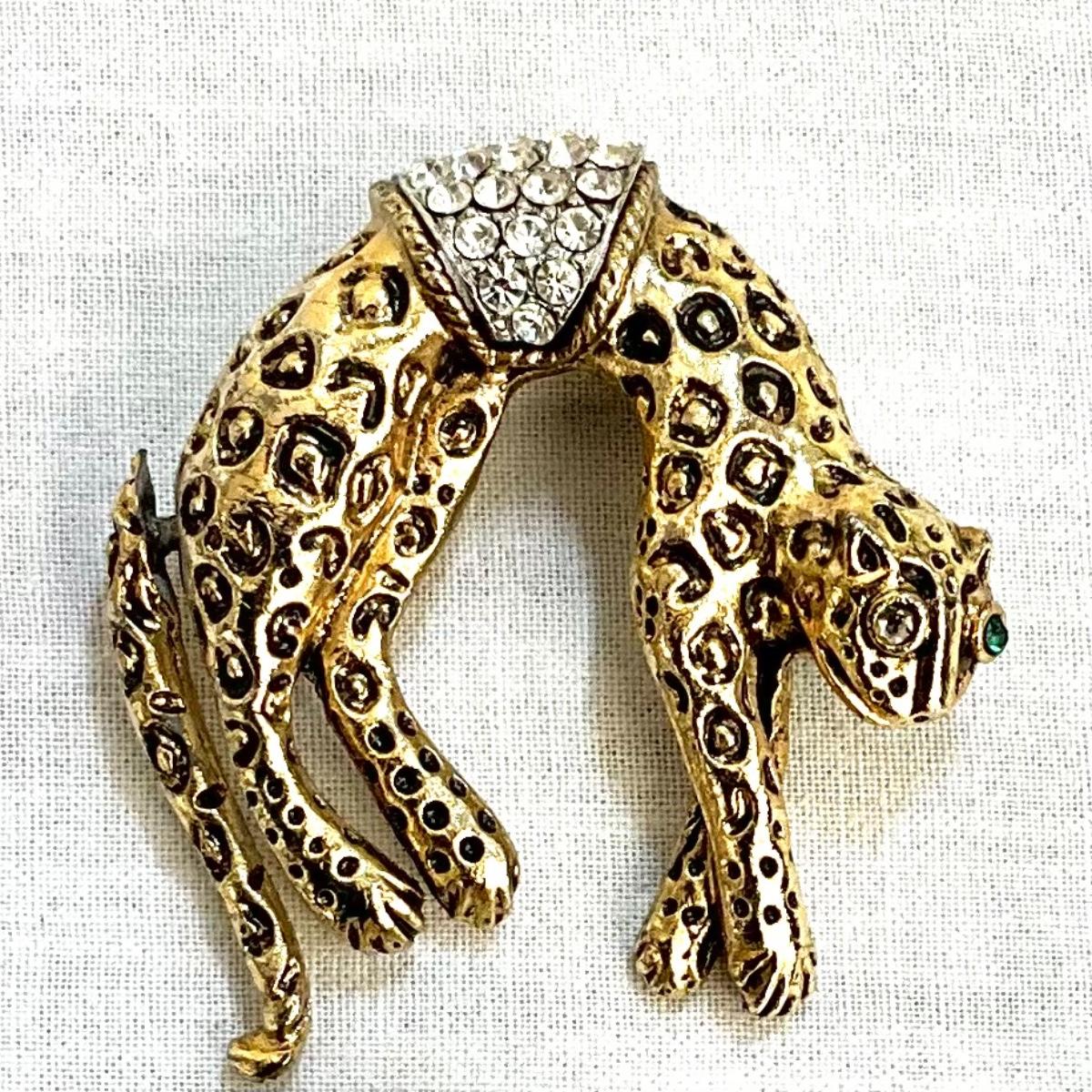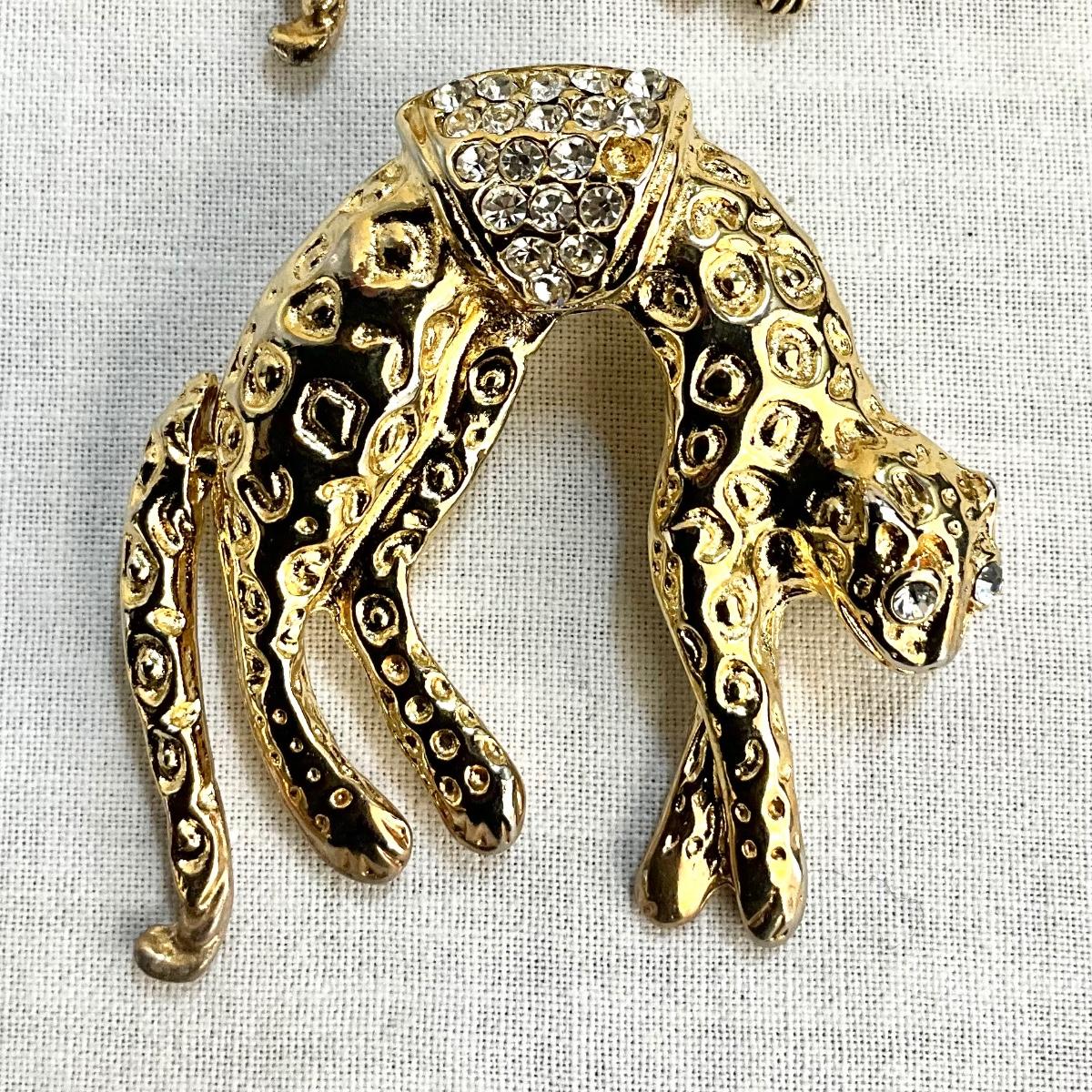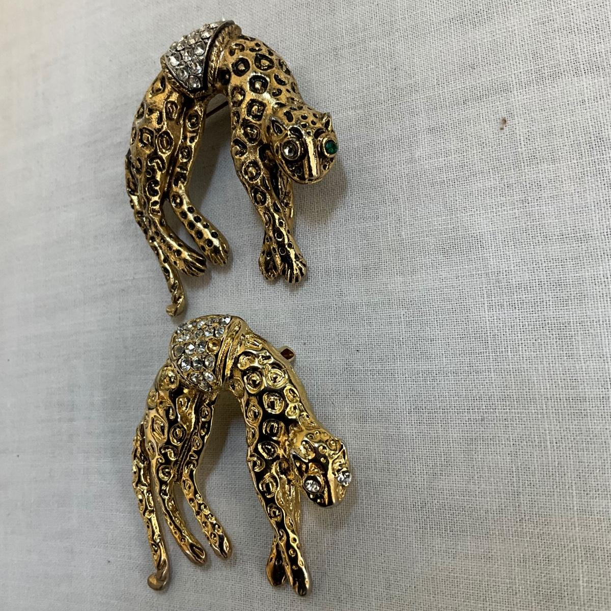 1052 Pair of Vintage Florenza Style Rhinestone Leopard Moving Tail Brooches