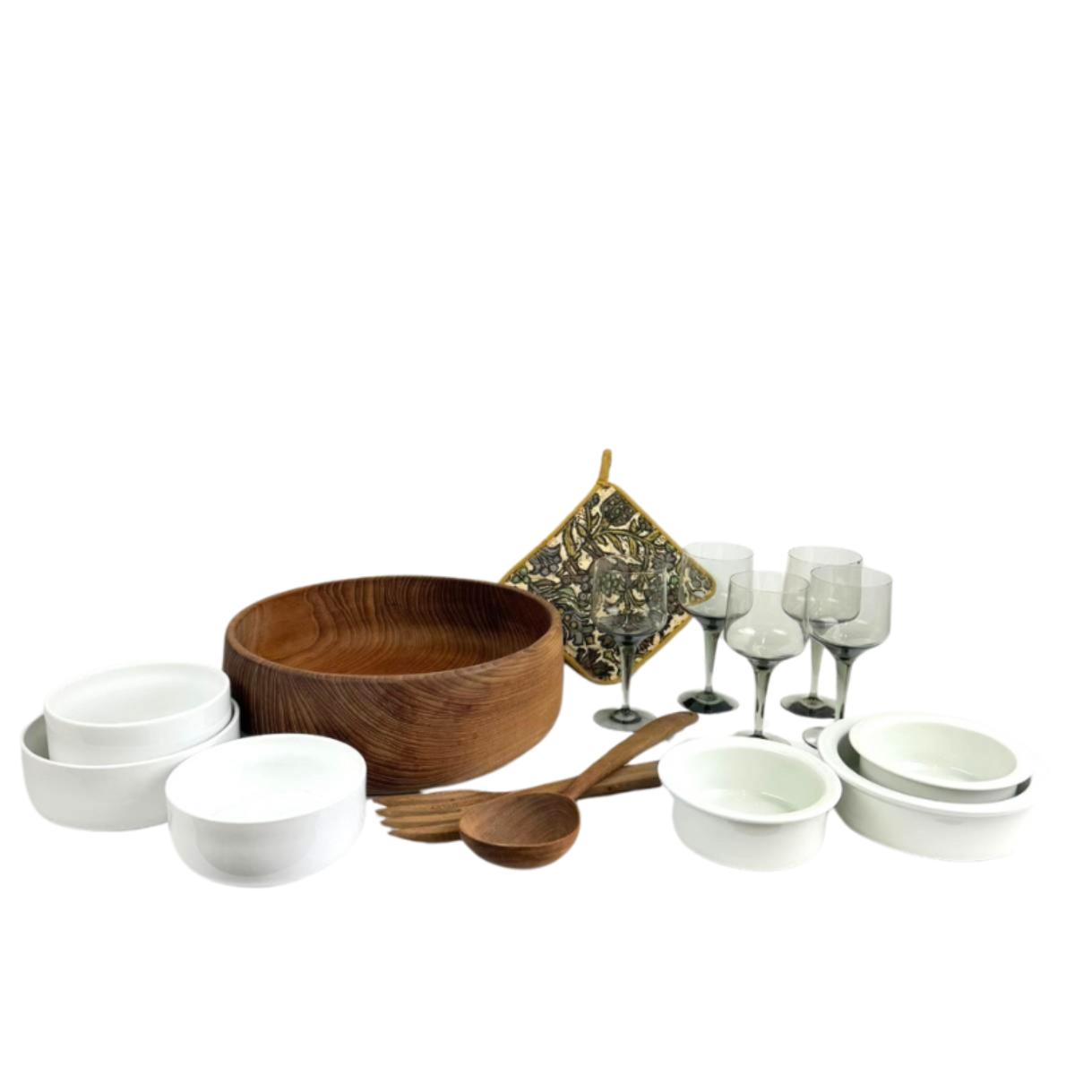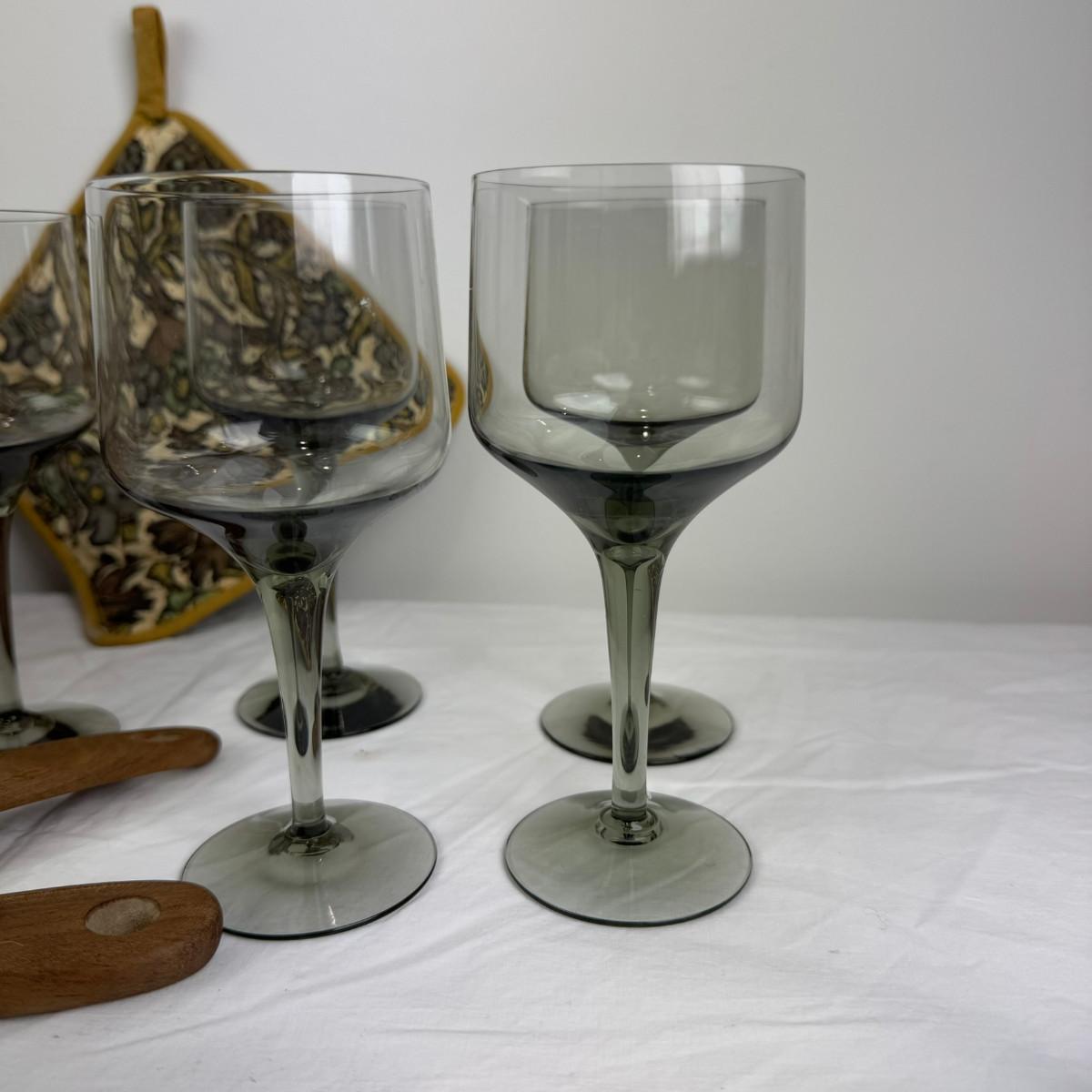 1052 Vintage Wooden Salad Set With Oreffors Smokey Wine Glasses