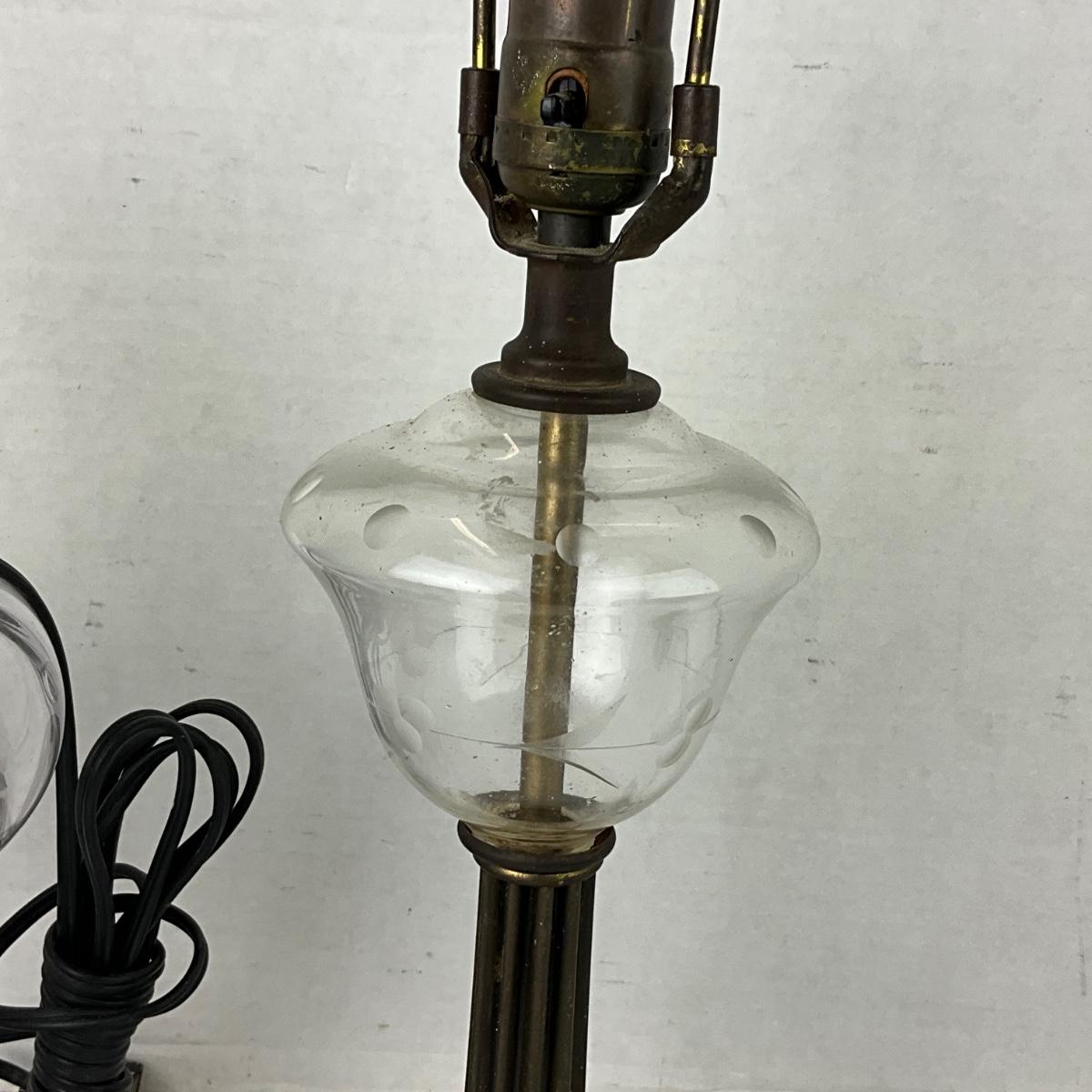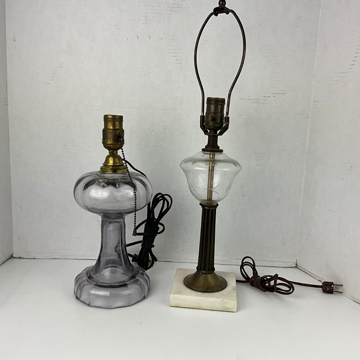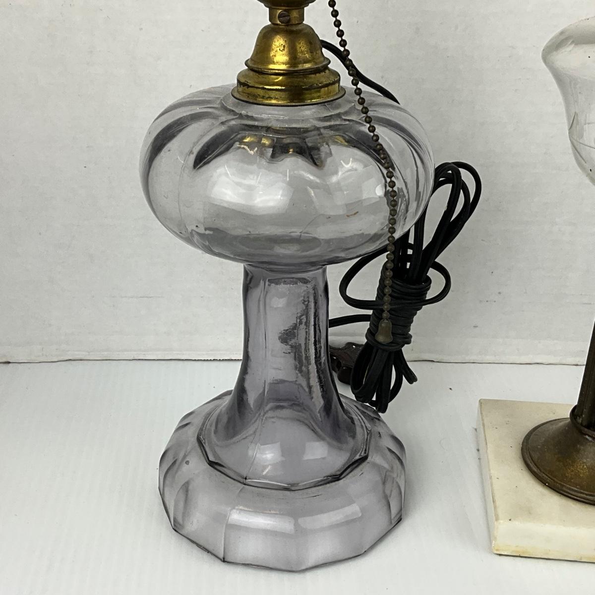 1055 Set of Two Antique Oil Lamps with Marble Base