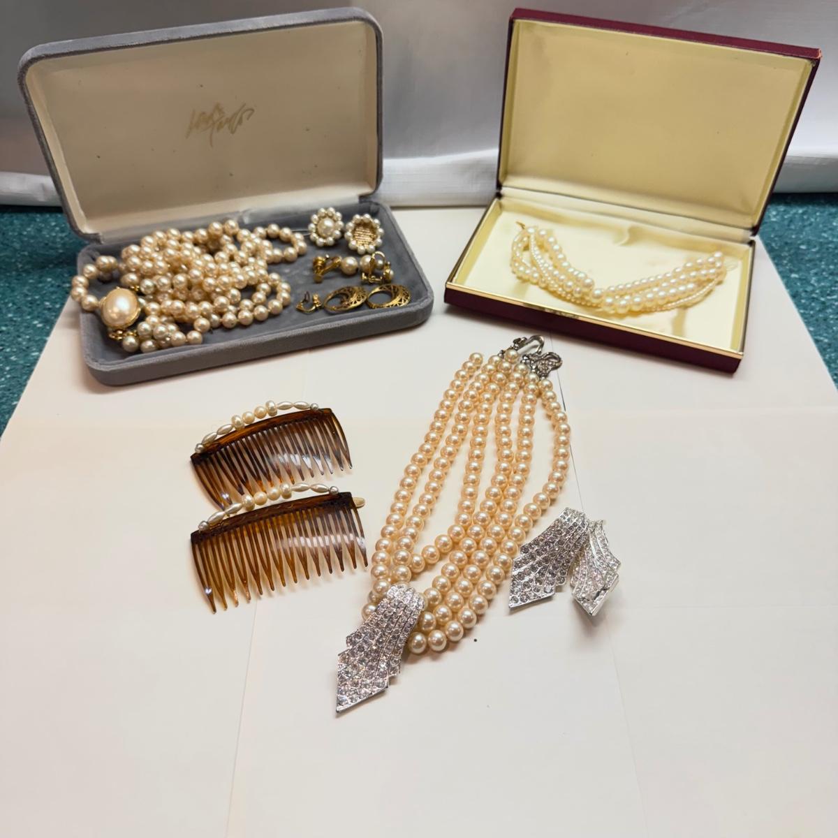 1057 Costume Pearl and Rhinestone Jewelry Lot
