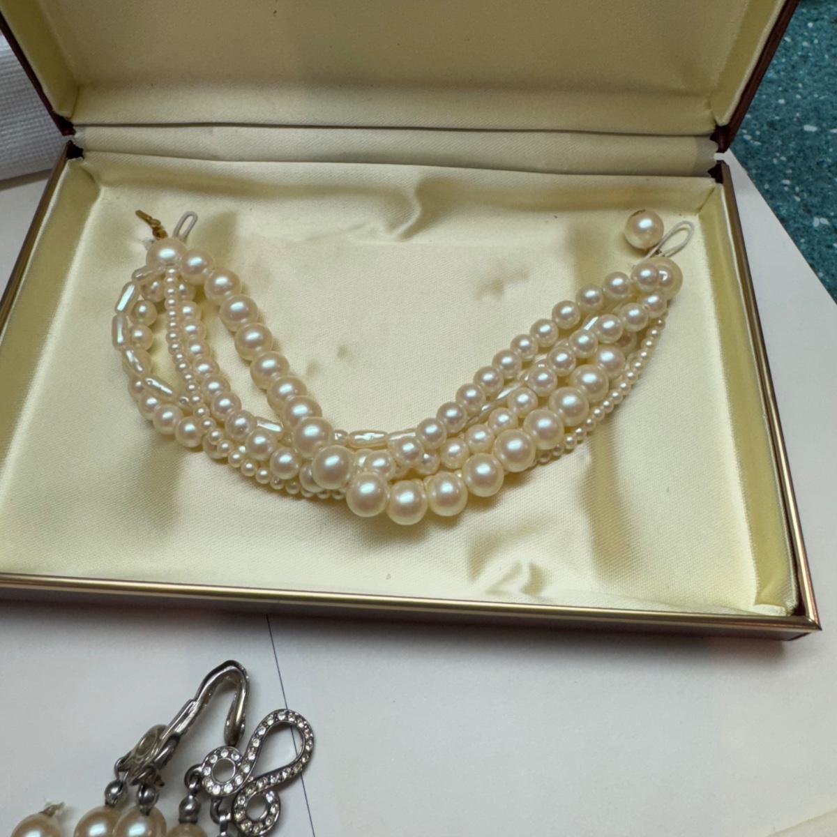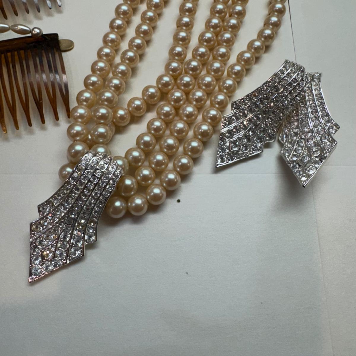 Pearl bracelet pearl necklace with rhinestone matching earrings and enhancer pearl hair combs pearl earrings and much more