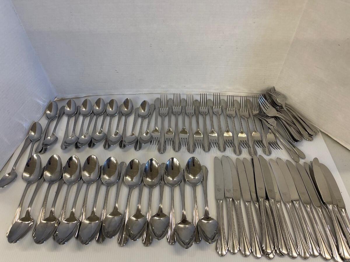 15 salad forks, 17 dinner knives, 17 teaspoons, 17 dinner forks, 18 tablespoons