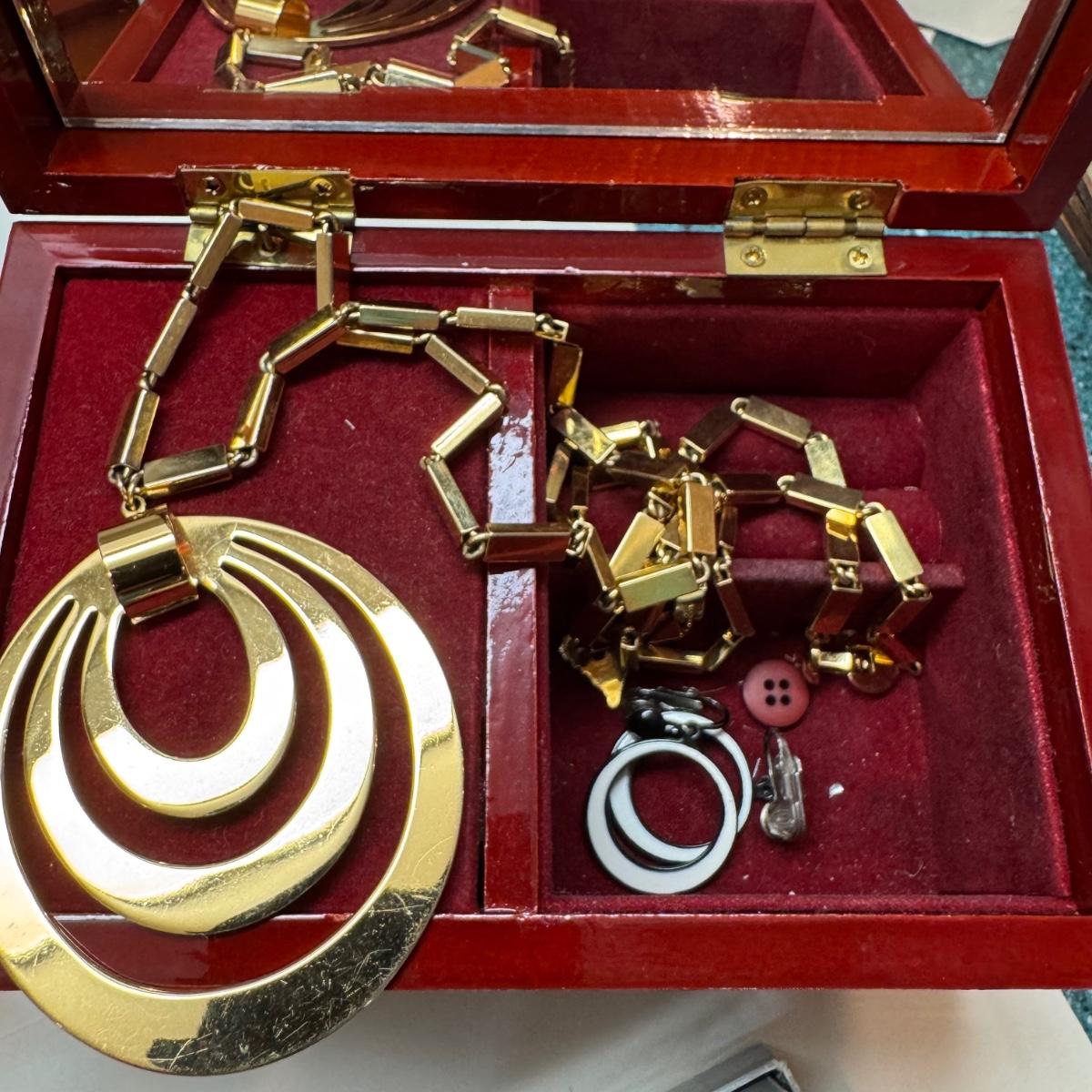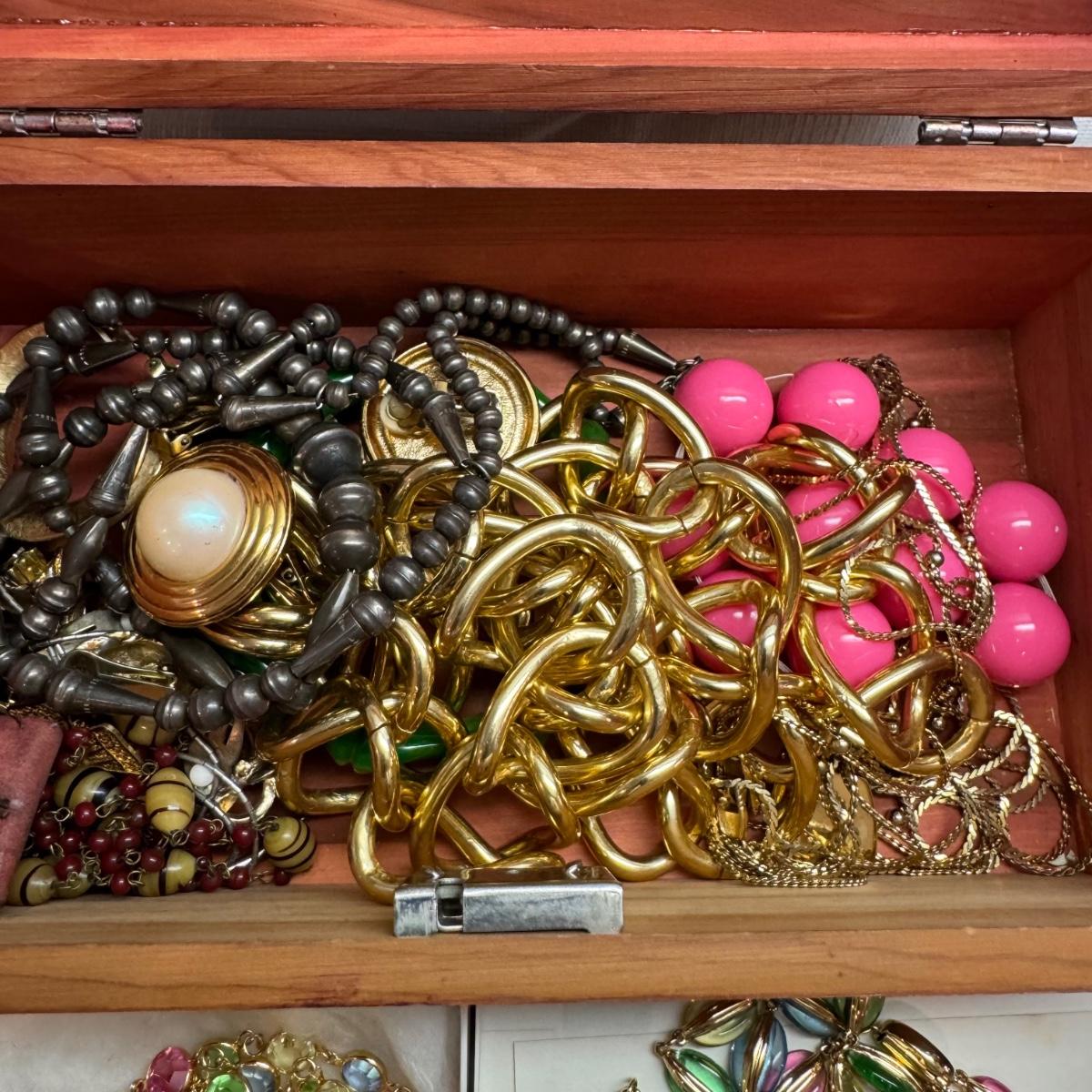 1058 Large lot of Costume Jewelry, Cedar Chest , Music Box