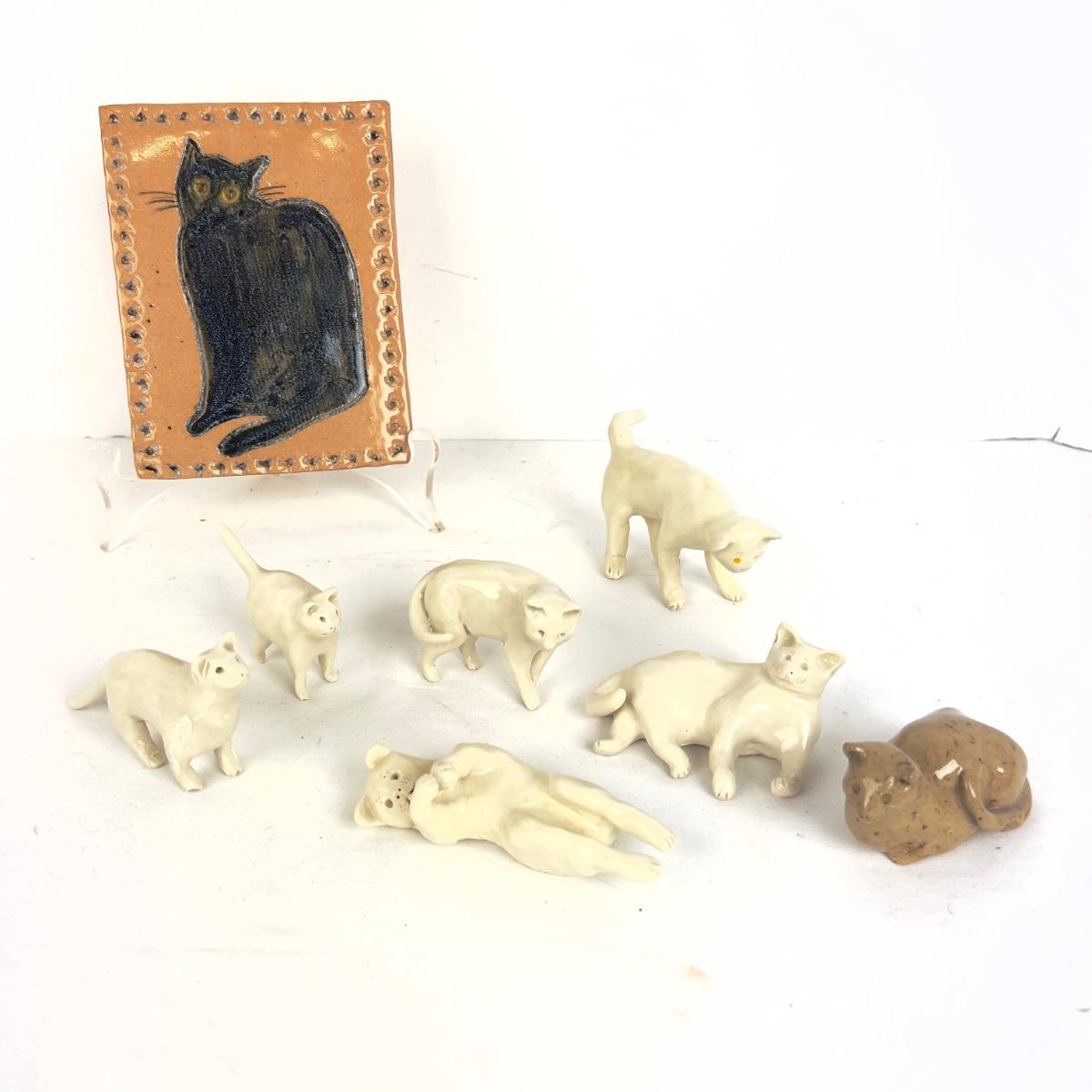 1058 Lot of Pottery Cat Sculptures by Virginia Perram