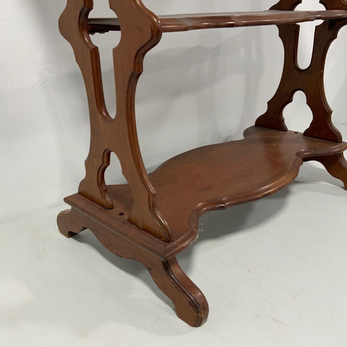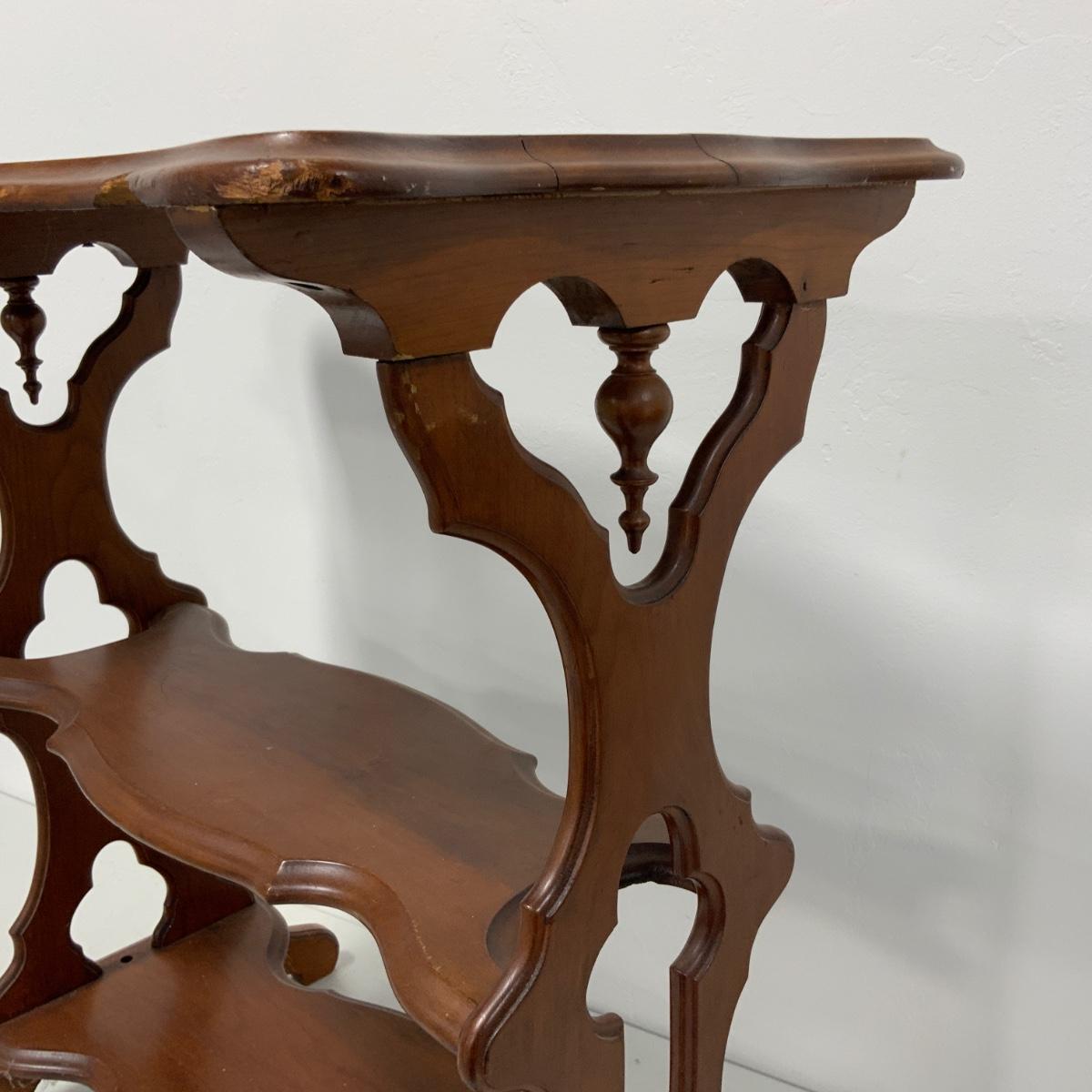 Beautiful Cherry Gothic Style Table, circa 1860. Looking at the underside it appears as though it has been reinforced over the years, but if you were 162 years old, you’d probably need a joint or two repaired too. Table measures 29.5” tall, 27” wide and 15” deep. Please see photos for details and condition. ::: Shipping is NOT available on this lot. If you have any questions regarding this lot please contact the auctioneer either via this website, by direct email or by phone. PICK UP TIMES and other important information can be found in the TERMS and DESCRIPTION of the auction. Please take a look for pertinent information. Thanks!