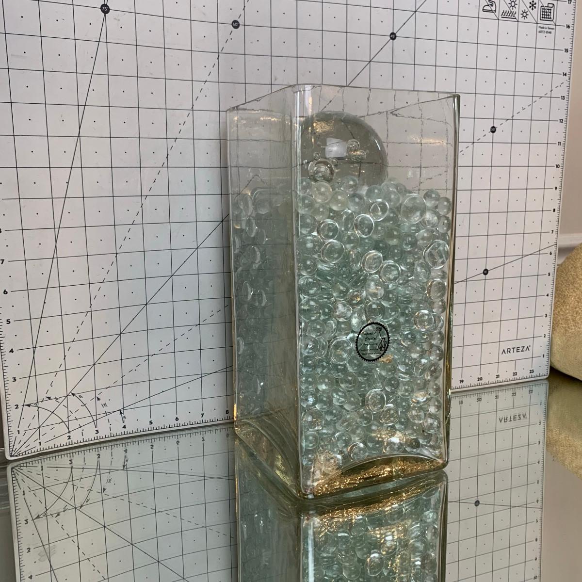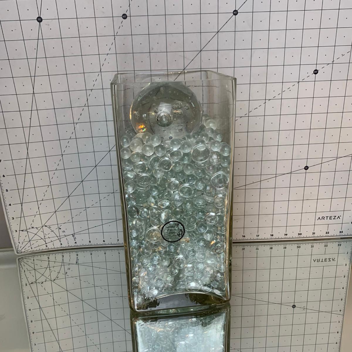 #106 Imported Crystal Vase With Glass Pebbles