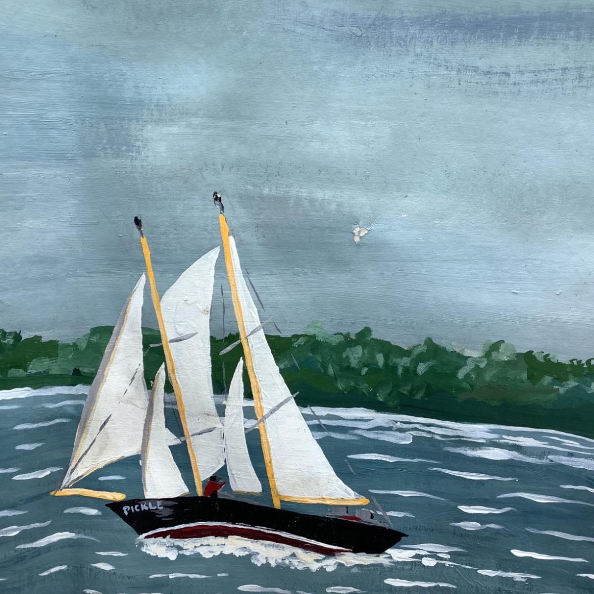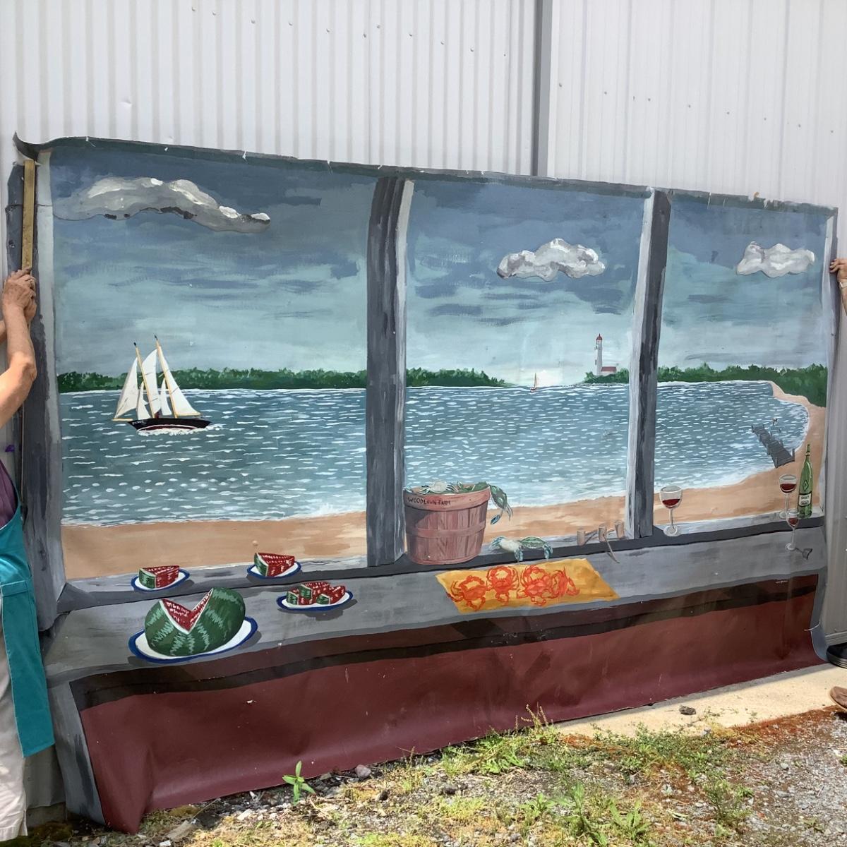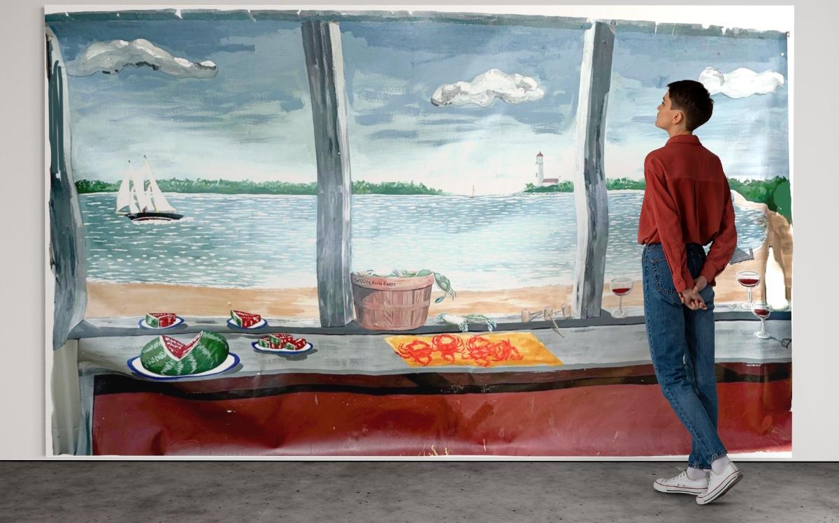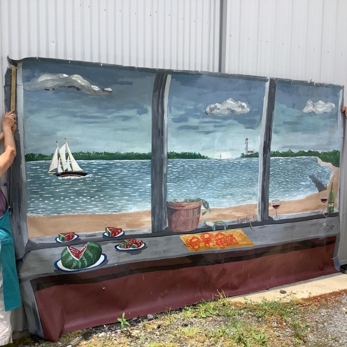106 Large Hand Painted Nautical Mural Scene on Vinyl 142" x 86"