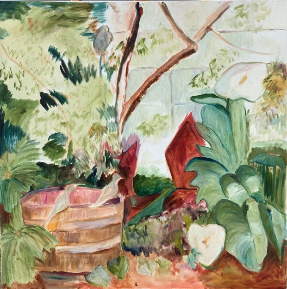 106 Original Oil Painting " Garden with Cala Lillies" by Ellen Into