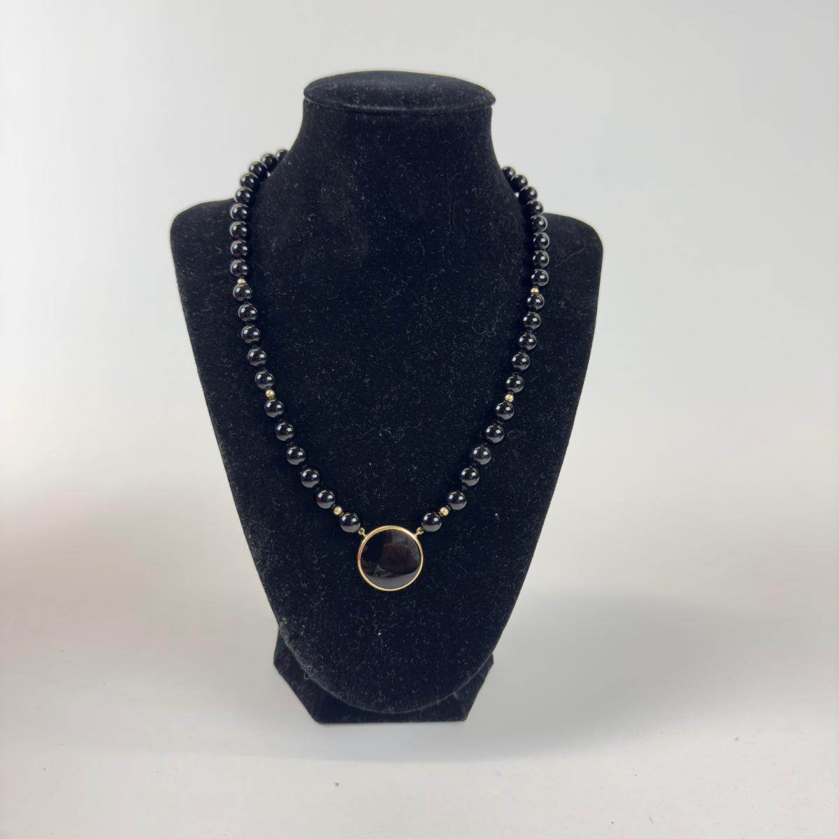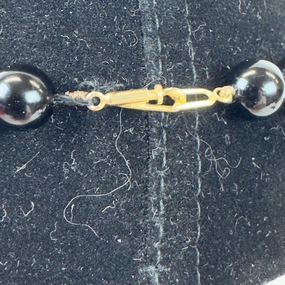 Measuring 17" in length. May need to be restrung is loose around clasp.