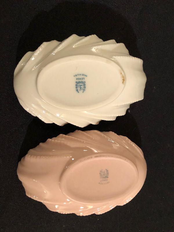 #1060 2 Lenox Shell Dishes Blue Back Stamp