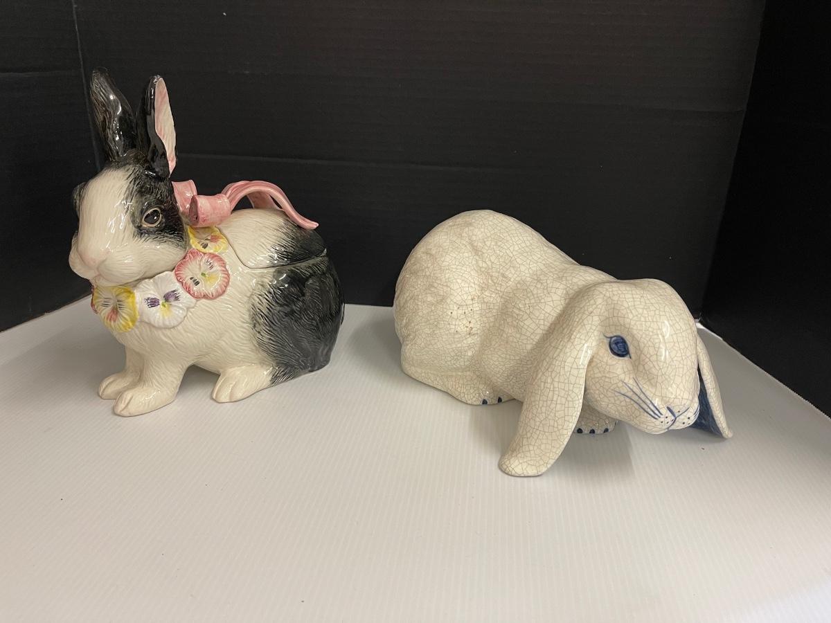1060 Two Porcelain Bunnies. Fitz and Floyd