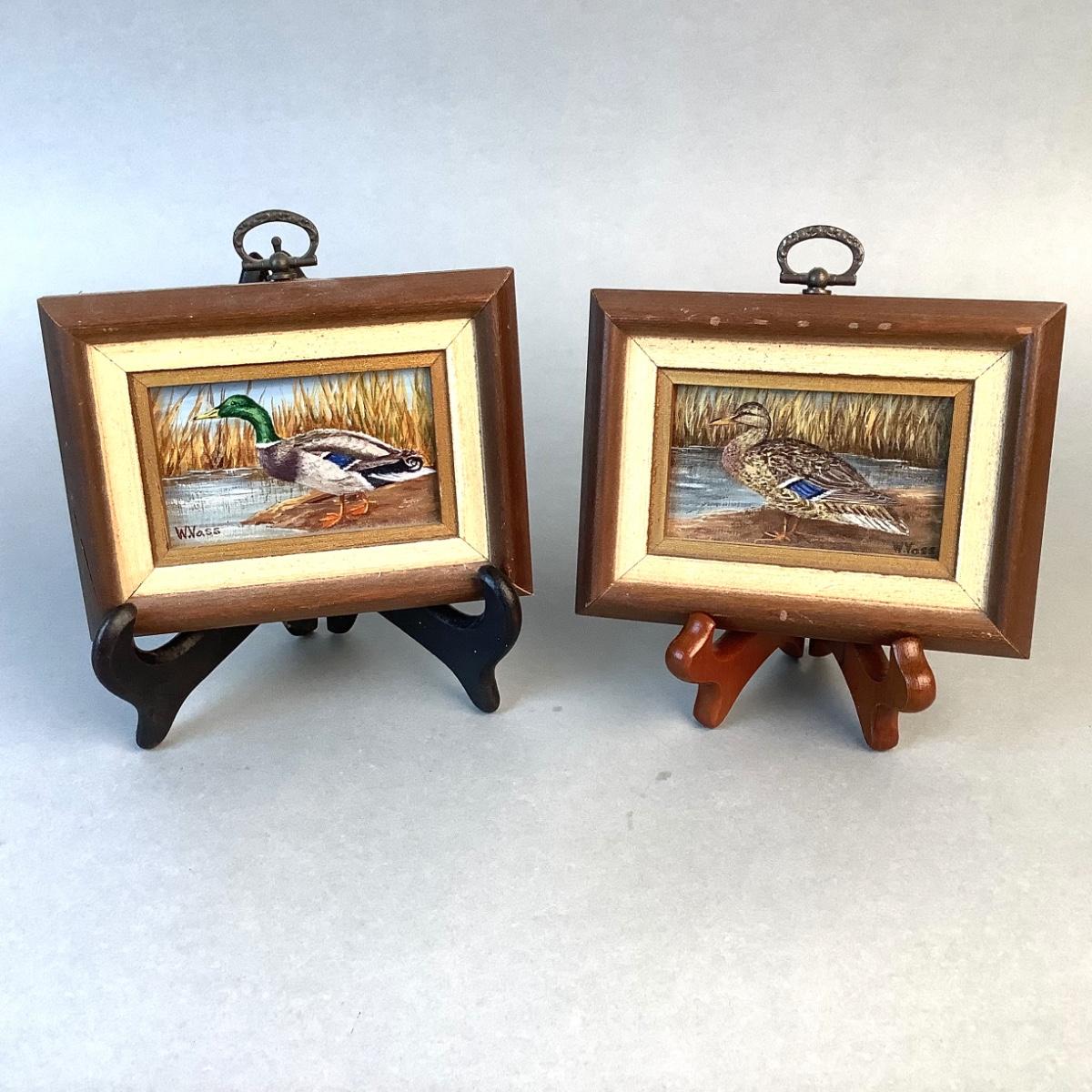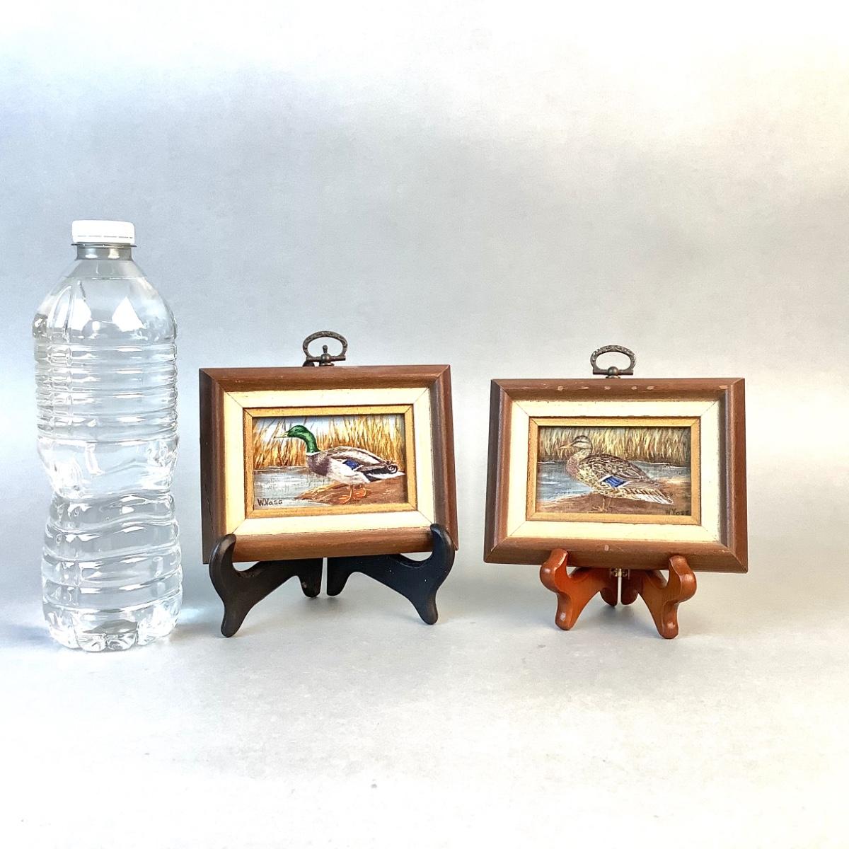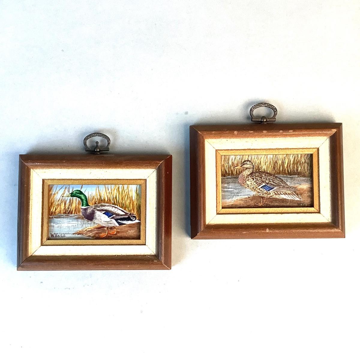 1062 Pair of Original Miniature Acrylic Mallard Duck Paintings by Wanda Vass