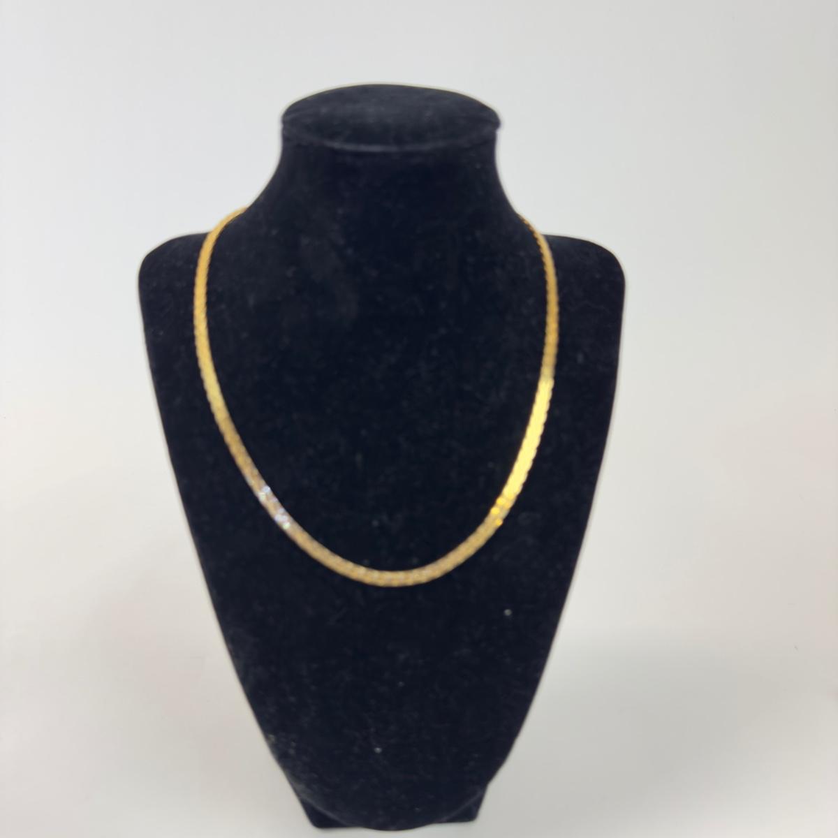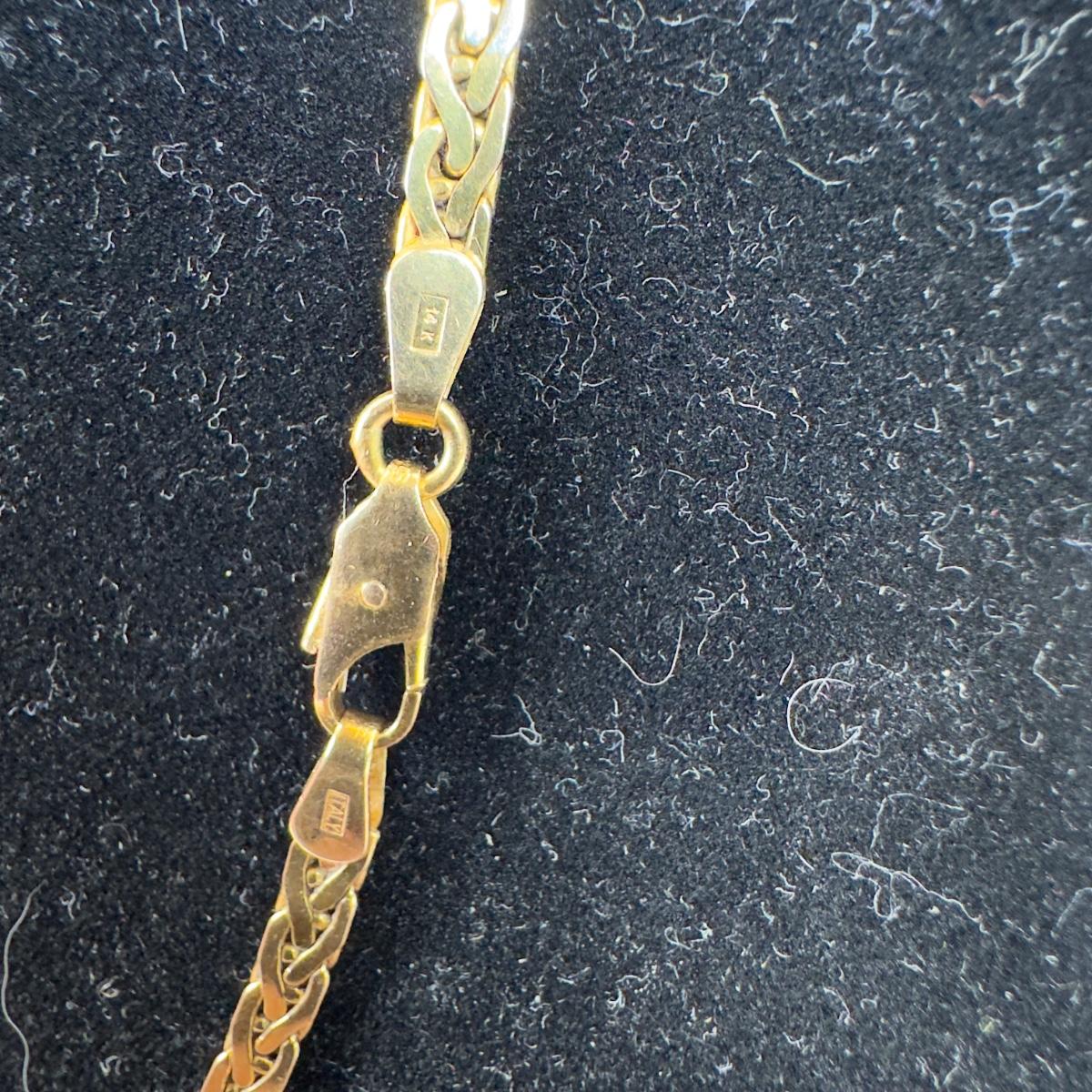 Very good condition with lobster class marked made in Italy 14 karat gold measuring 18 inches and length. Weighs in at 16.3 grams