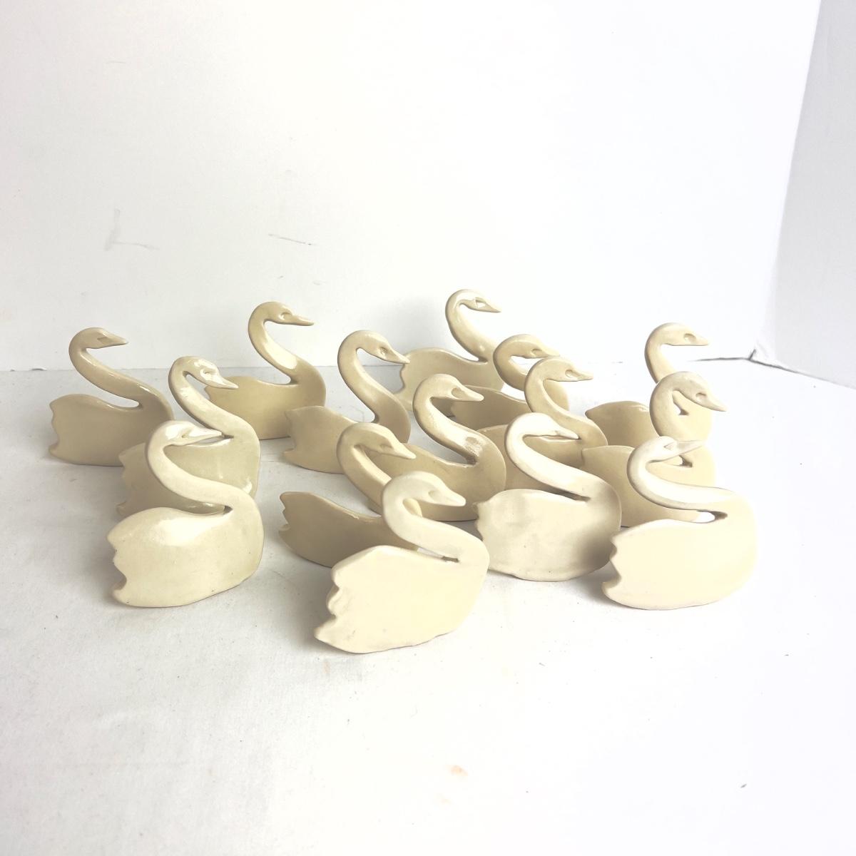 1063 Lot of 18 Handmade Pottery Swan Placecard Holders