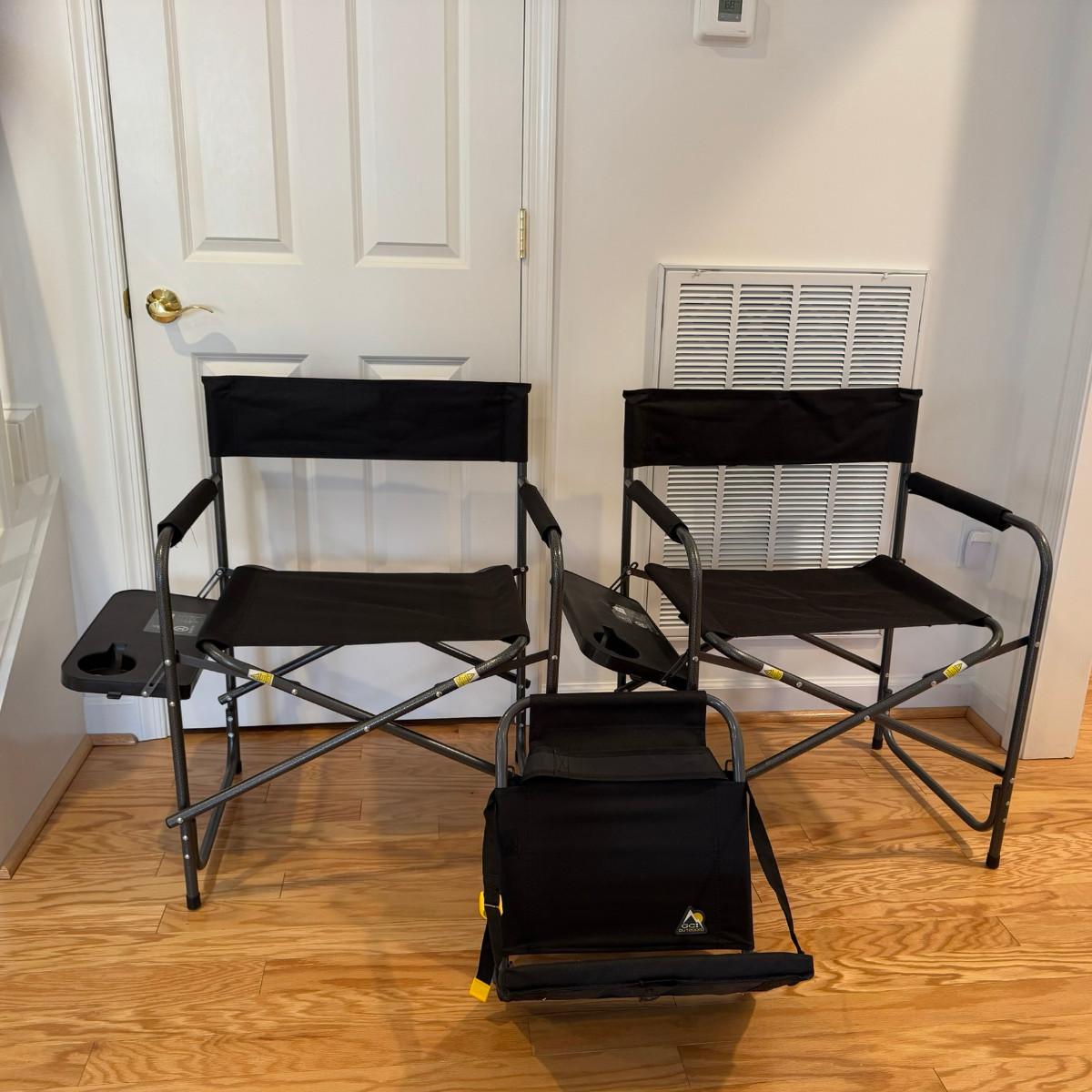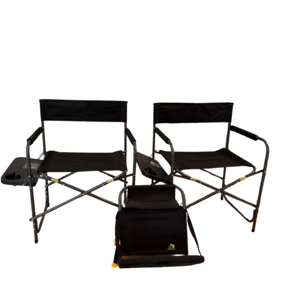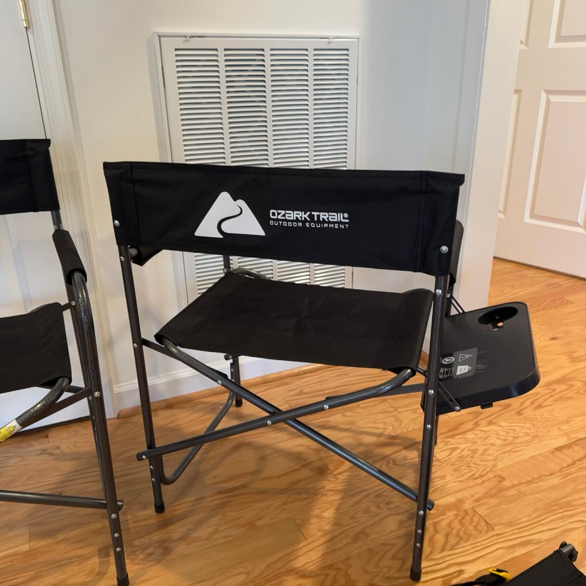 1063 Pair Of Ozark Trail Folding Chairs With Tray & One Stadium Seat