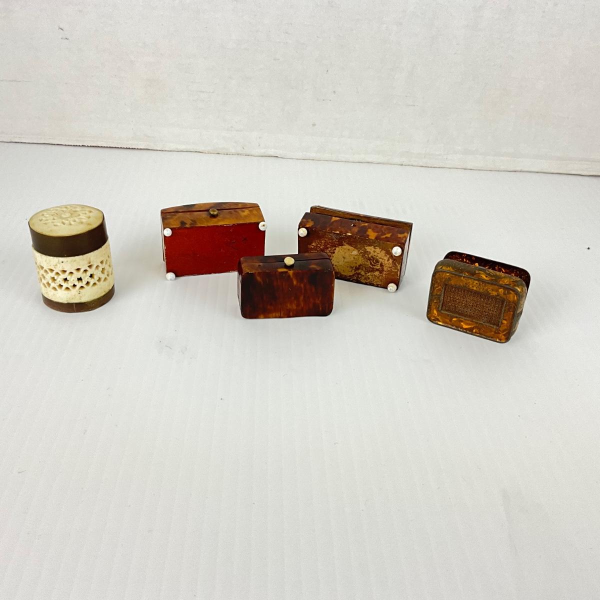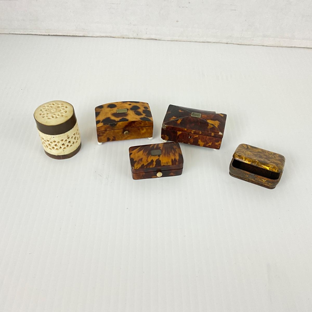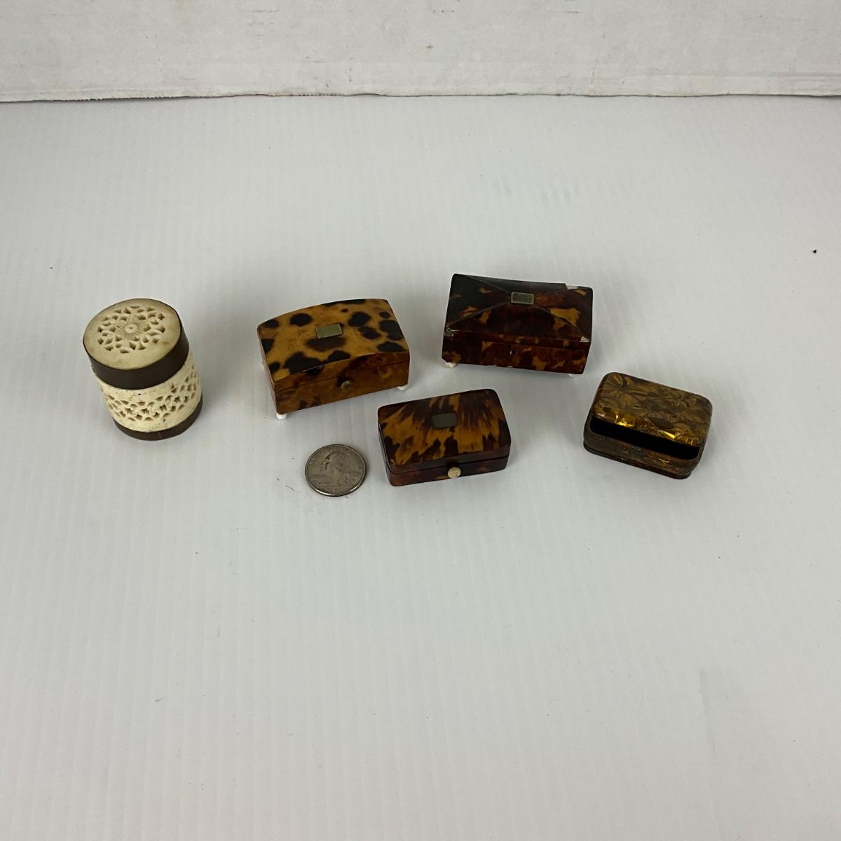 1064 Antique Miniature Tortoise Shell Boxes and Nutmeg Grater