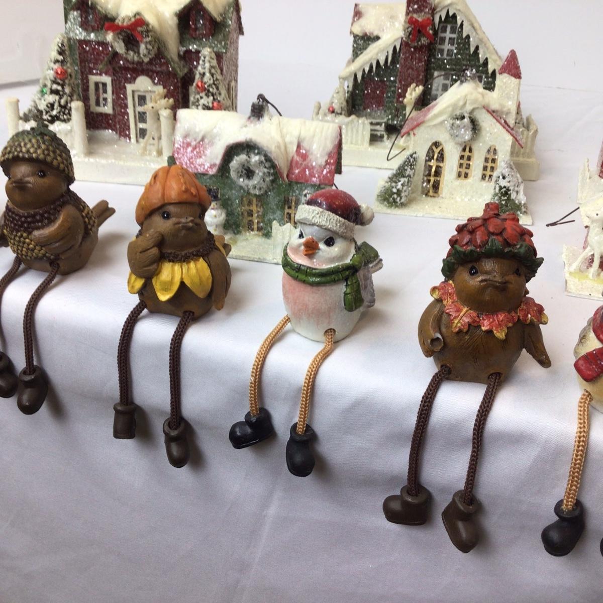 There are 8 shelf sitters and both ornamental houses and decorative houses.