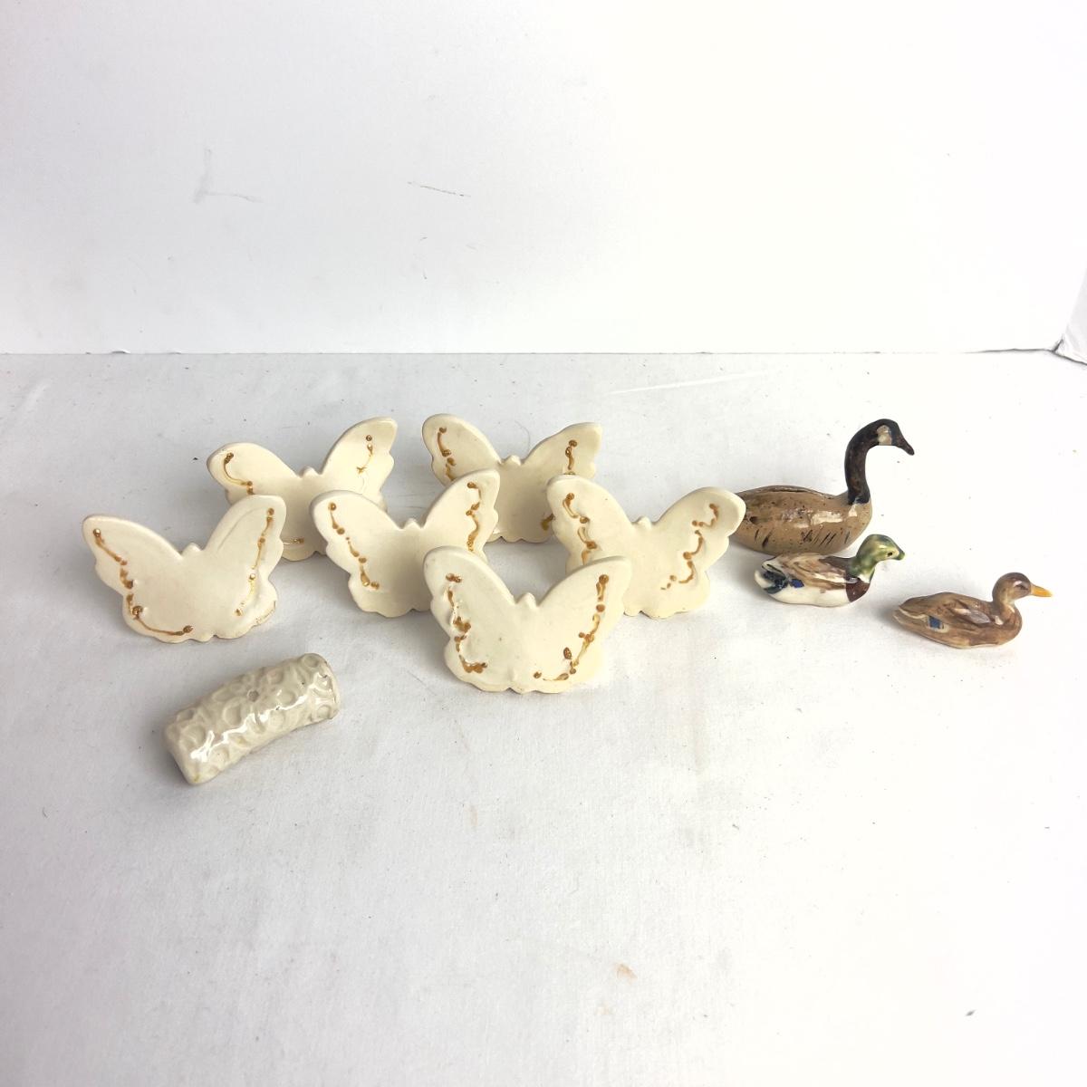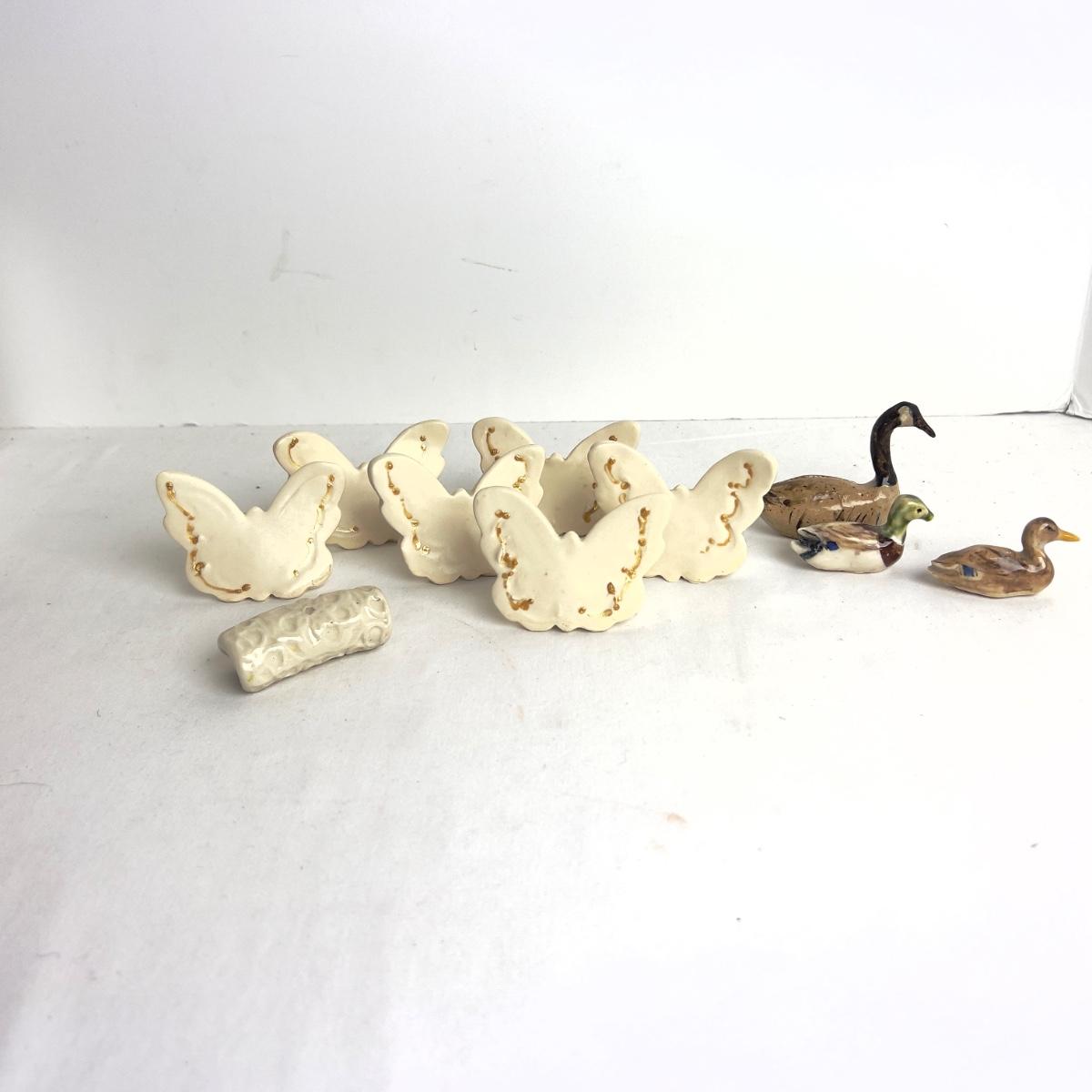1064 Lot of Butterfly Pottery Placecards and Duck Sculptures by Virginia Perram