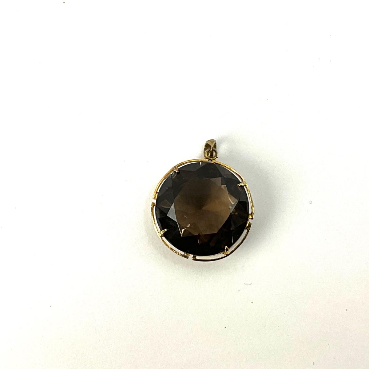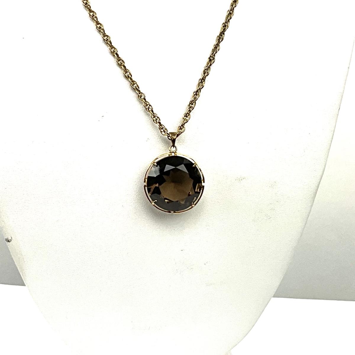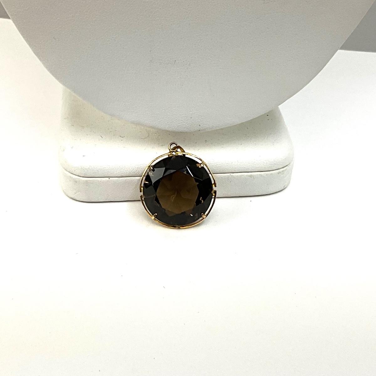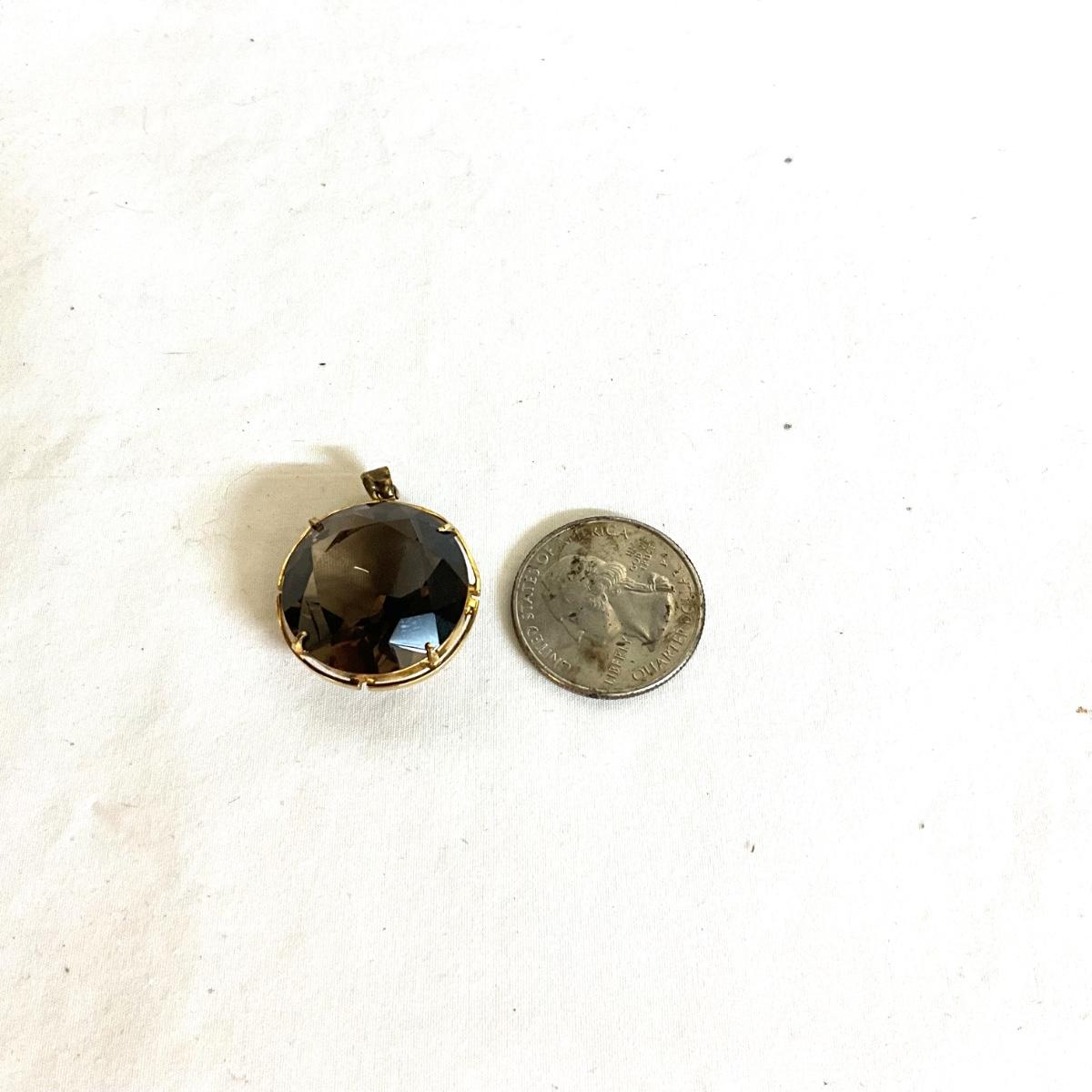This is for one round brown smoky quartz pendant (only) with bale. Testing 10k yellow gold
