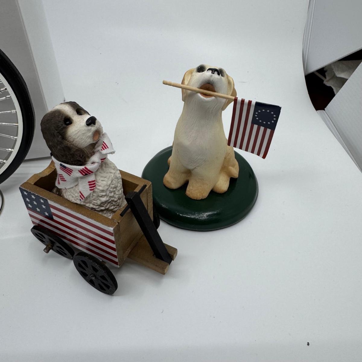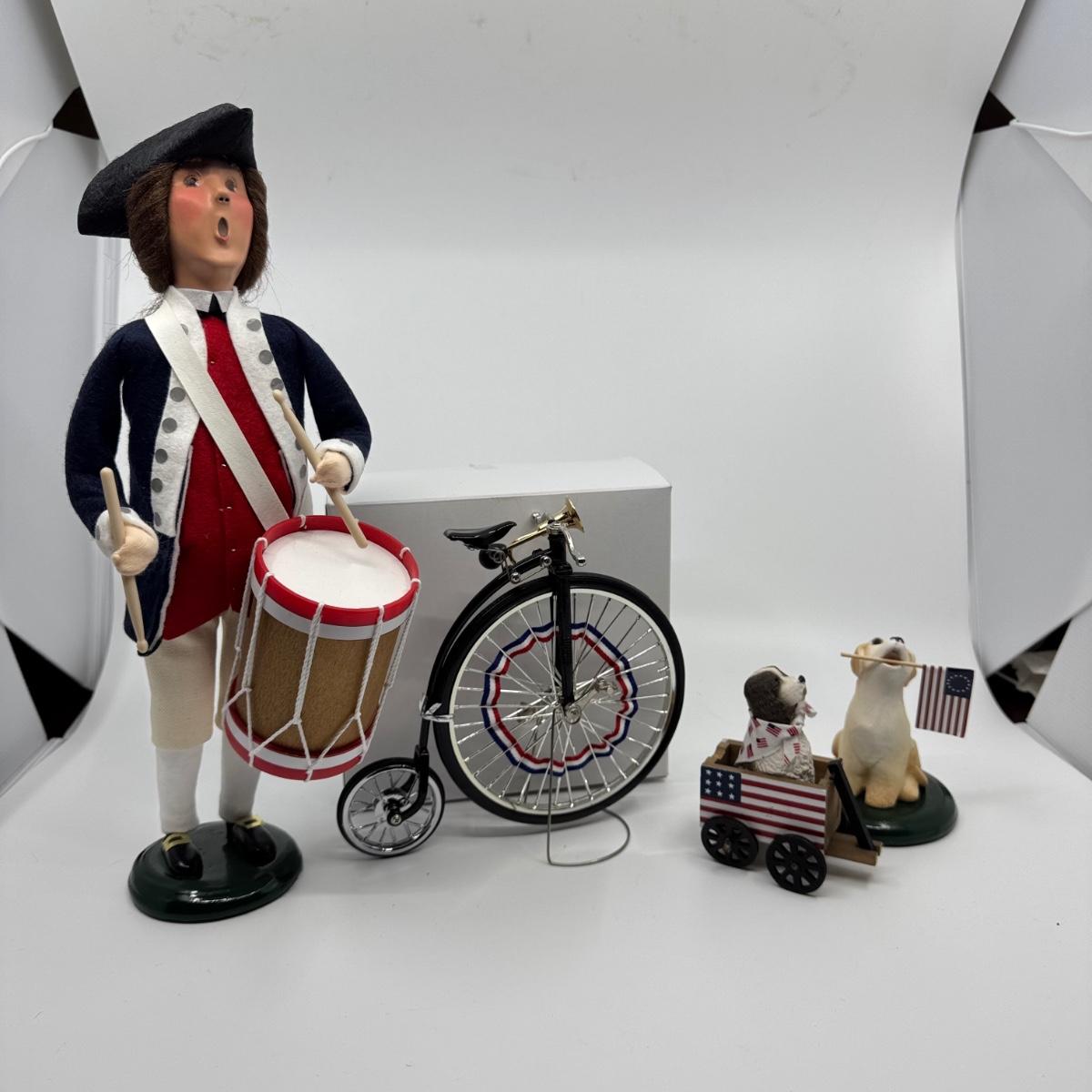 1065 Byers Choice Drummer with Bicycle , and Two Dogs