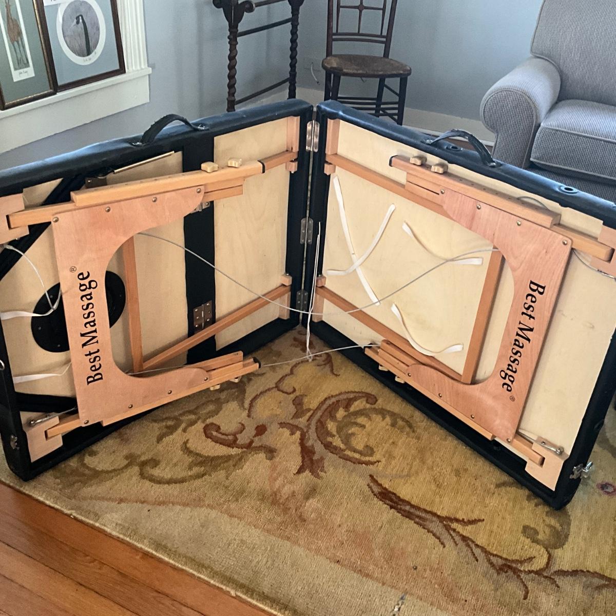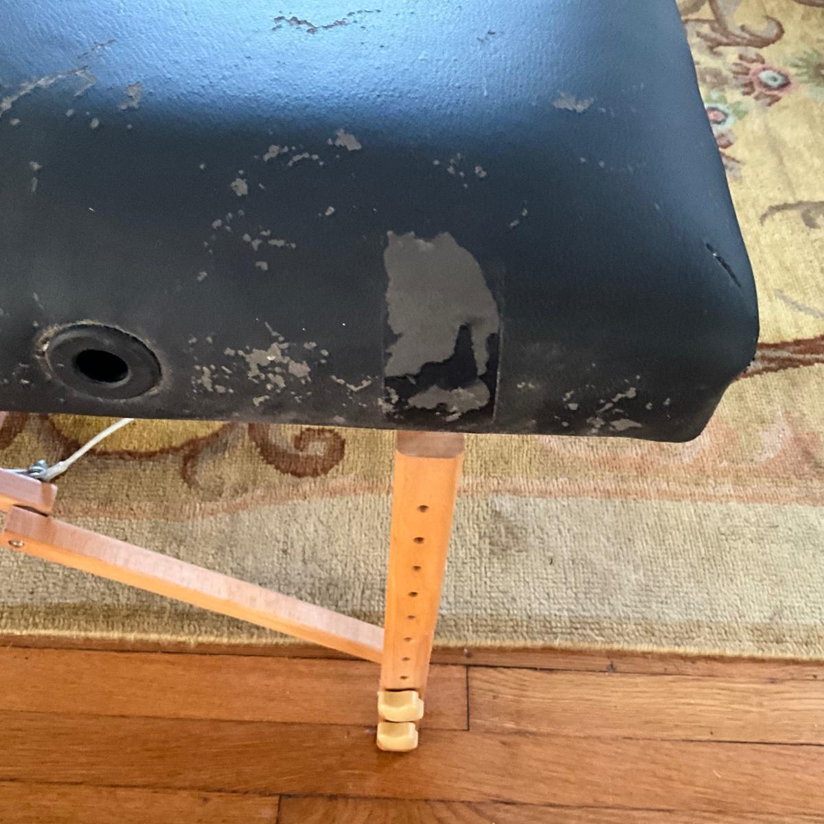 Inside is in like new (legs and bottom) The top black material has areas of discoloration