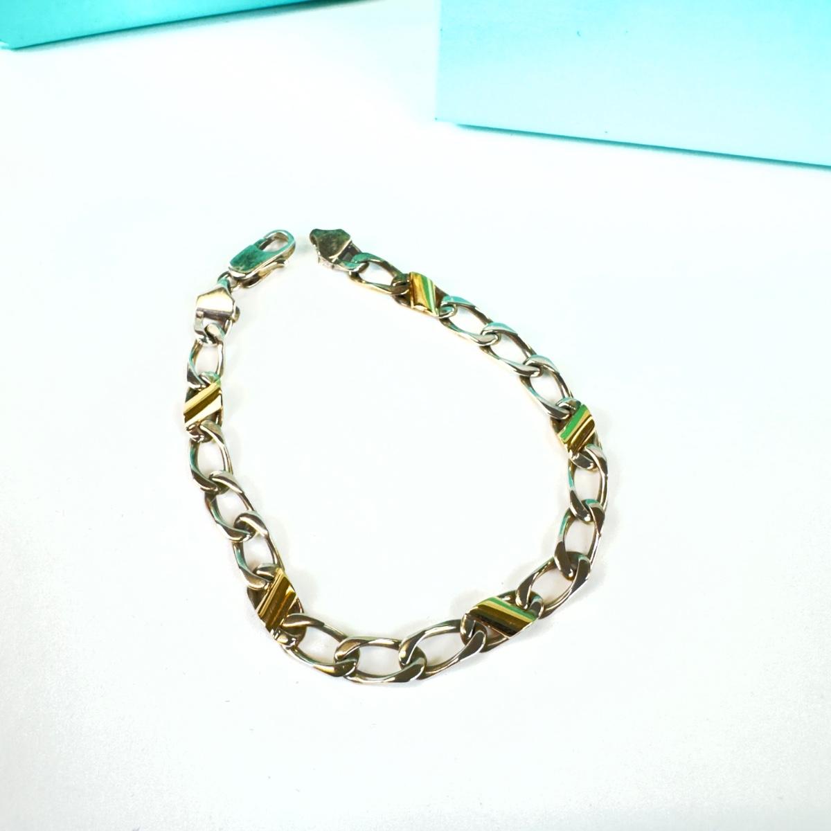 1066 TIFFANY & CO 18k and Sterling Figaro Link Bracelet
