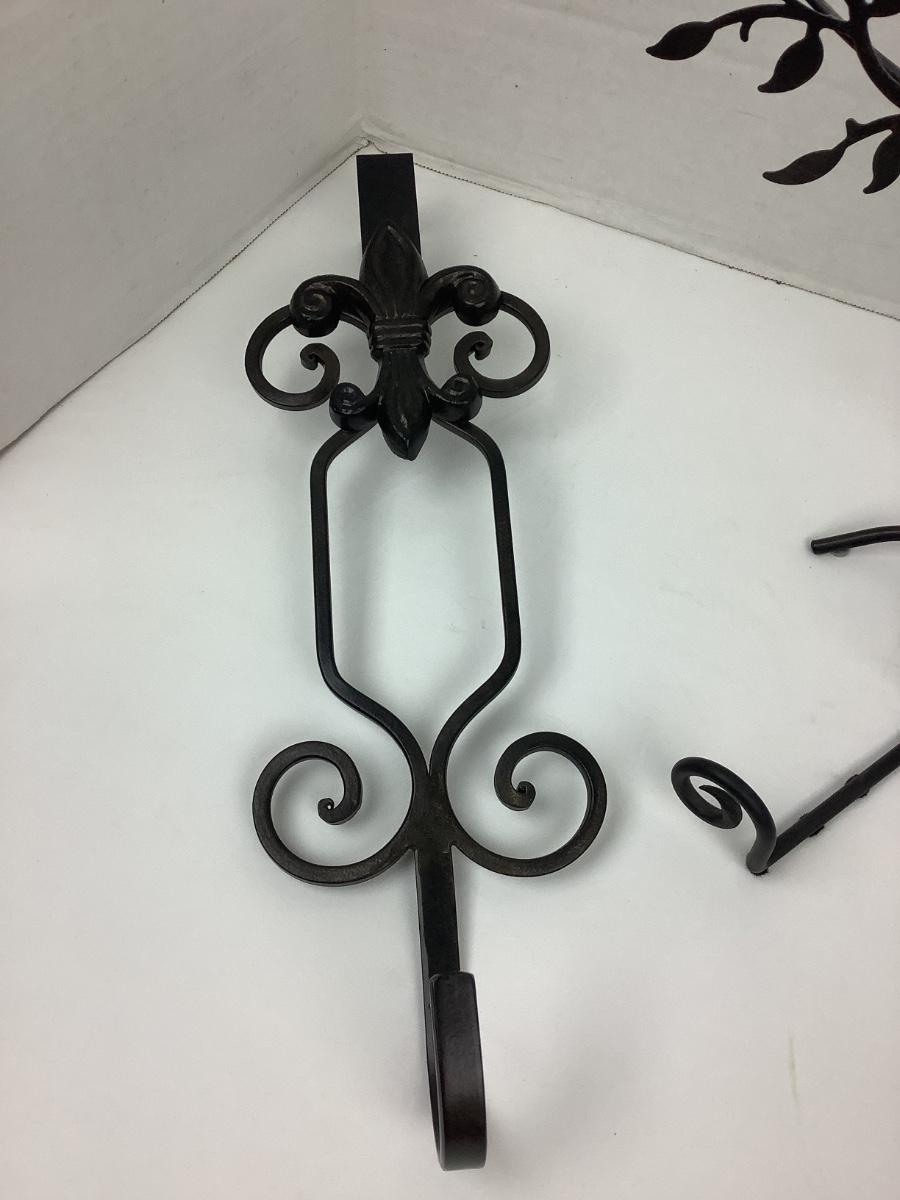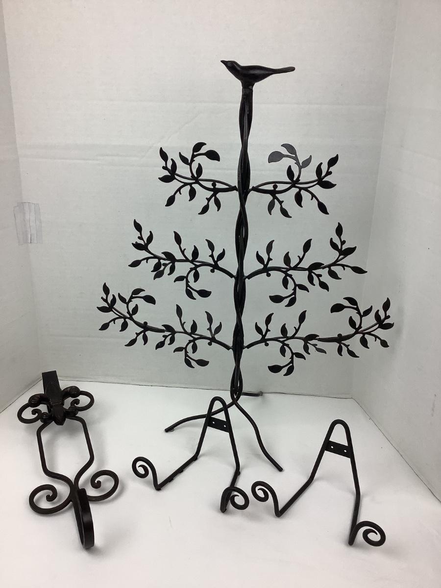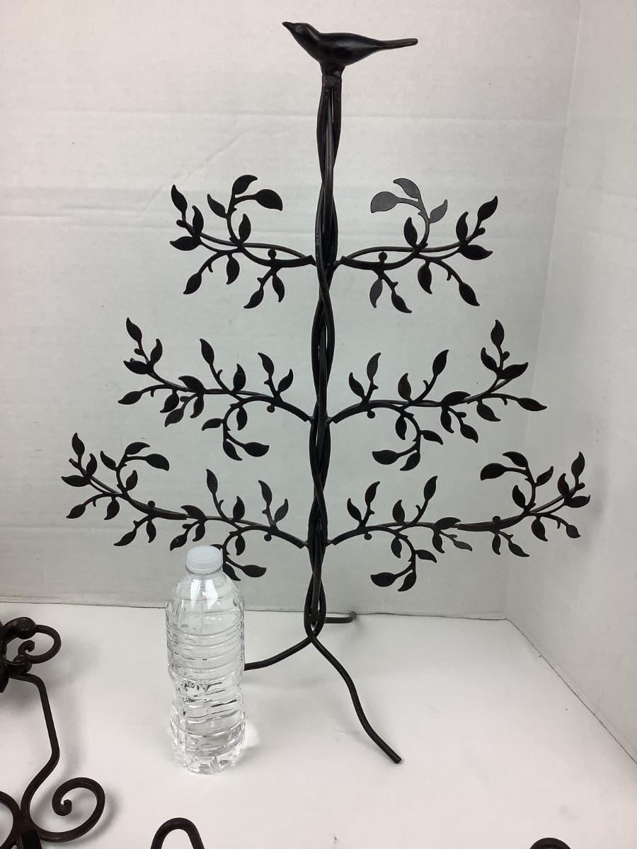 Tree with bird at the top (24" tall and 18" at its widest) 2 plate stands and Fleur de lis wreath holder.