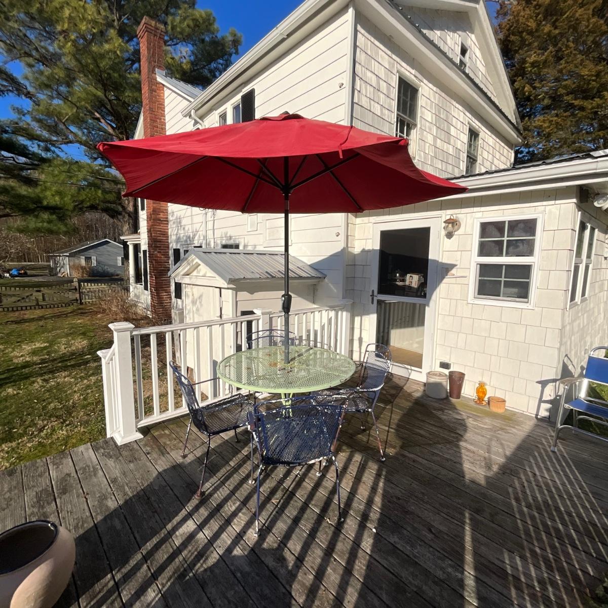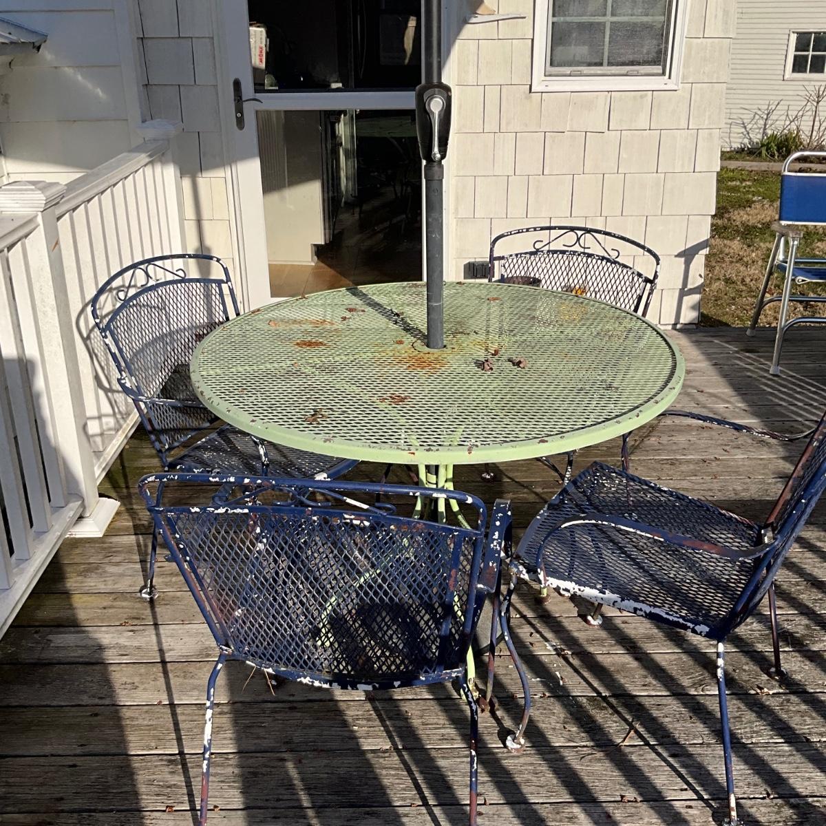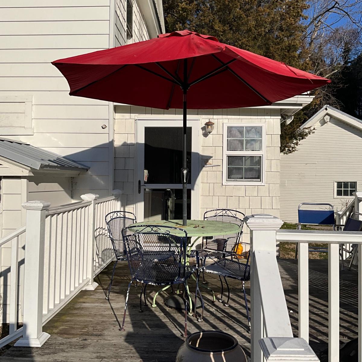 O1067 Outdoor Metal Table and Chairs with Red Umbrella