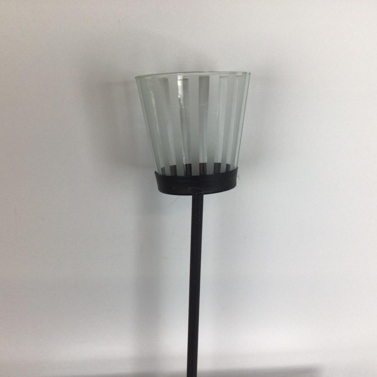 There are 10 votive stake holders that are 9” and 16” and there are 8 votive glass shades.
