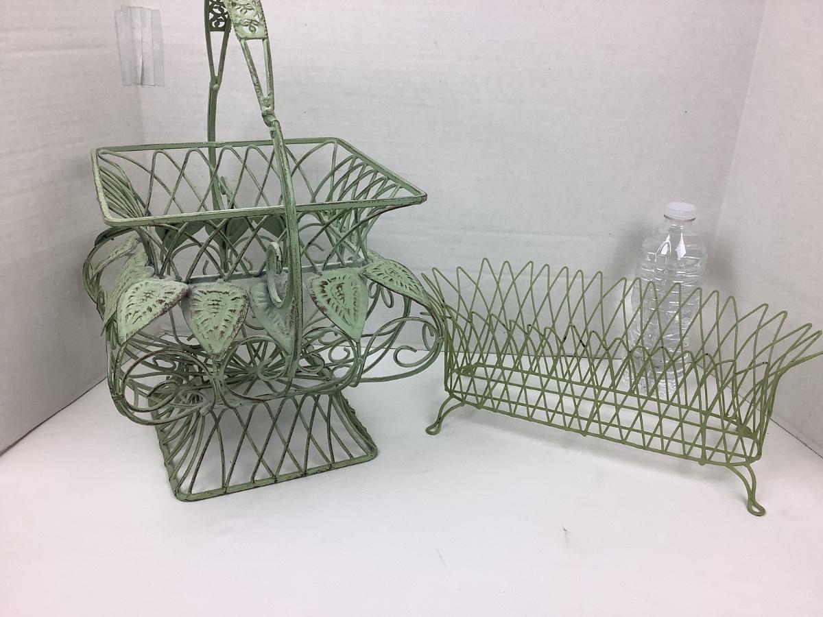 Large basket is 15" tall and 10" wide, rectangular basket is 14" x 6" x 6"