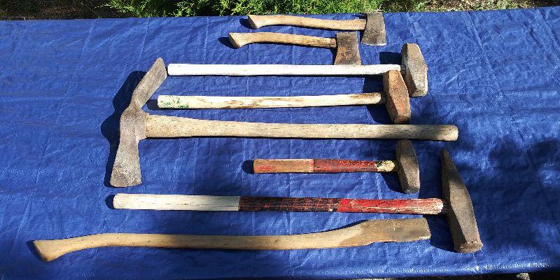 Set of Large Sledge and Hatchet Tools with collectable wood handles