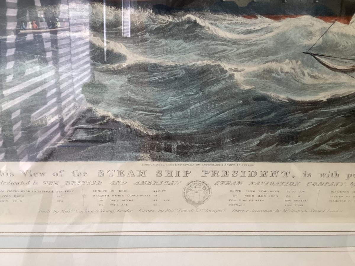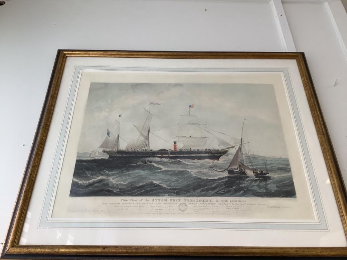 107 Antique Lithograph with hand coloring “ The View of the Steam Ship President” by Henry Papprill