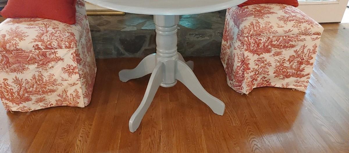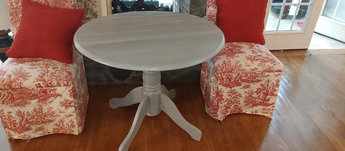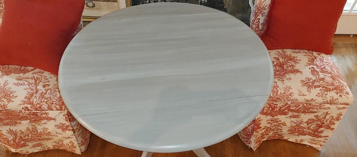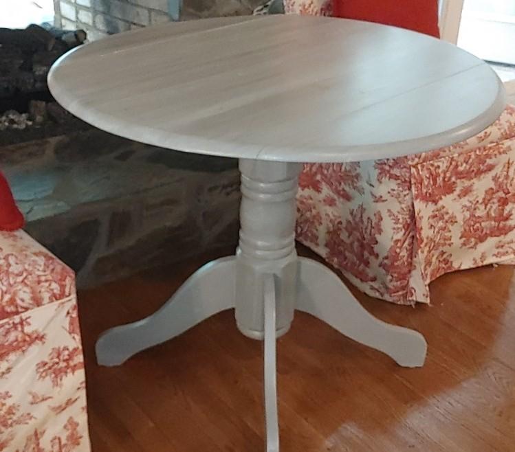 #107 Antique Drop Leaf Table painted Farm House Grey! Awesome Piece just the perfect size! 35.5 inches in diameter.