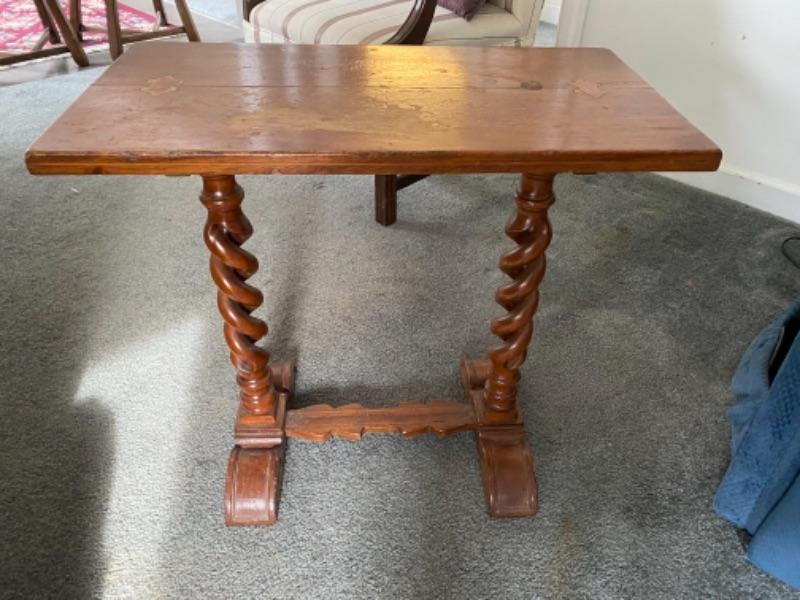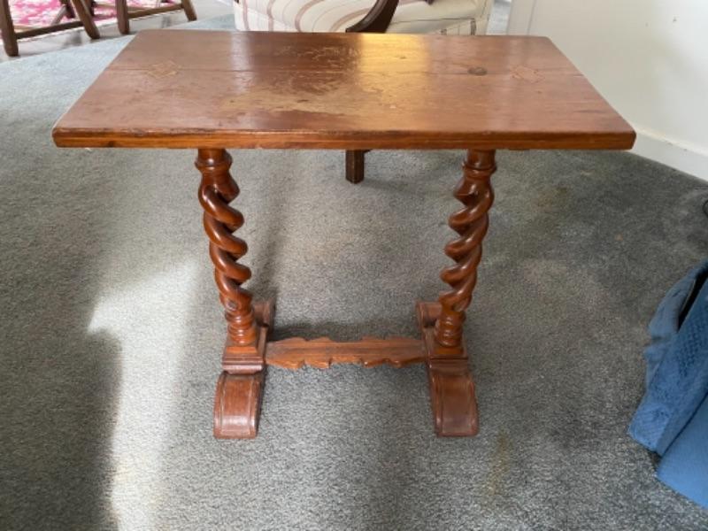 Barley Twist Table Walnut Table with Butterfly Joints measuring 2’5” x 1’ 5” x 2’ high