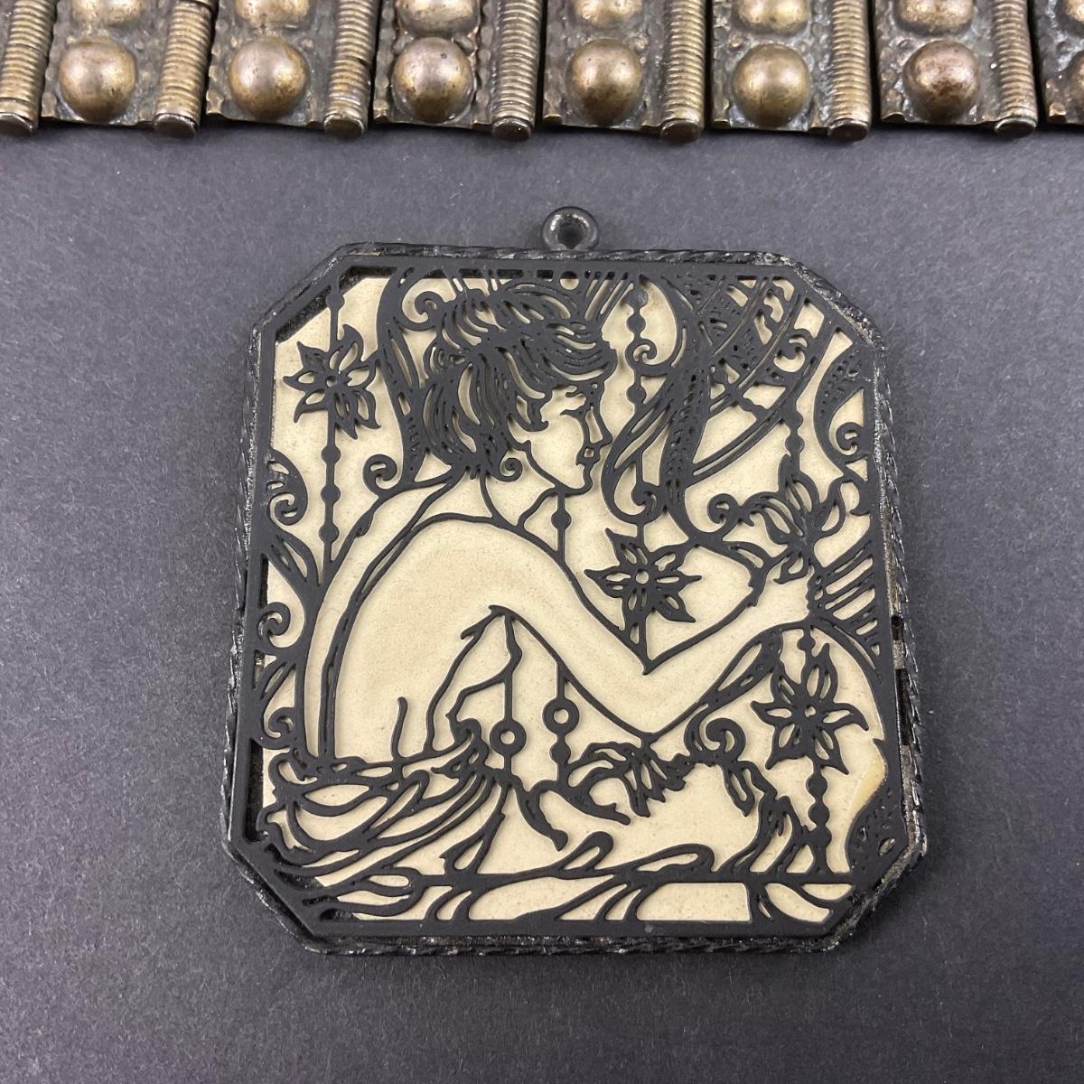 Two very unique pieces including, one unmarked middle eastern style bracelet. And one signed vintage 1971 JANM square Pendant with a lady on the front. Please see photos for details and condition. Any condition statement is given as a courtesy to a client, is an opinion, and should not be treated as a statement of fact. Reference to condition written, oral or within a condition report shall not be regarded as a full account of condition and may not include all defects, alterations, or restorations. Absence of a condition report does not imply a lot is flawless or lacking imperfections or damage. Katherine’s Auction & Appraisal Service shall have no responsibility for any error or omission. Returns shall not be accepted on the basis of condition. ::: Shipping is available on this lot. If you require shipping you must let us know at the close of the auction. We will coordinate with you after the item has been won. Shipping fees will include insurance up to or exceeding the value of all items being mailed. If you have any questions regarding this lot please contact the auctioneer either via this website, by direct email or by phone. PICK UP TIMES and other important information can be found in the TERMS and DESCRIPTION of the auction. Please take a look for pertinent information. Thanks!