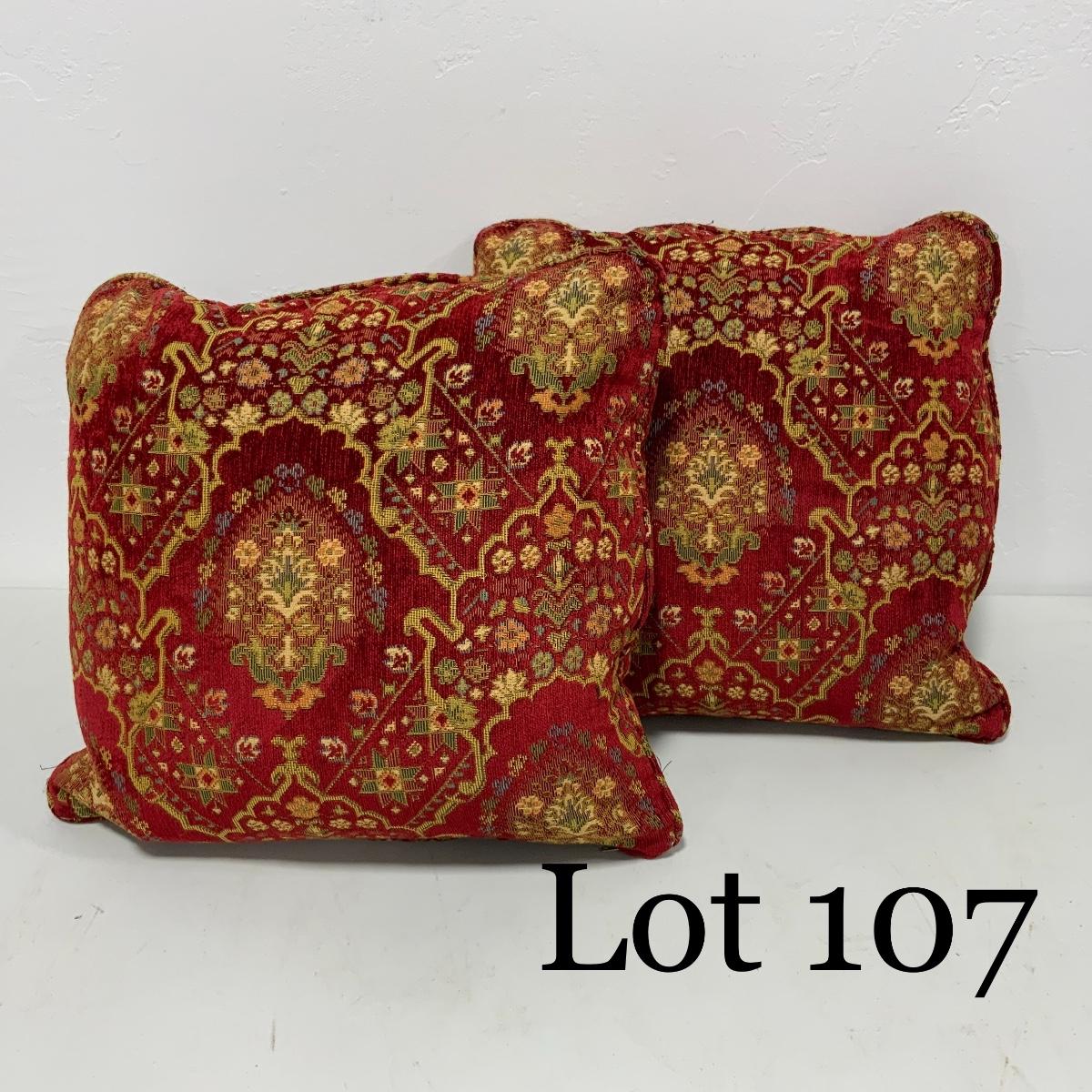 From the Estate of Peter and Alice Radovanovich: Two nice down-Filled Accent Pillows. Bright Vibrant Colors and a great feel. Please see photos for details and condition. ::: Shipping is NOT available on this lot. If you have any questions regarding this lot please contact the auctioneer either via this website, by direct email or by phone. PICK UP TIMES and other important information can be found in the TERMS and DESCRIPTION of the auction. Please take a look for pertinent information. Thanks!