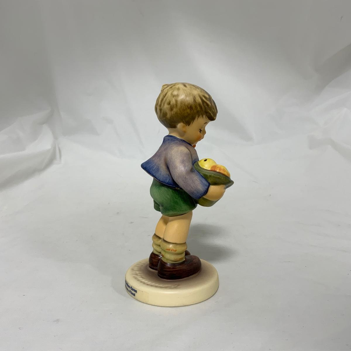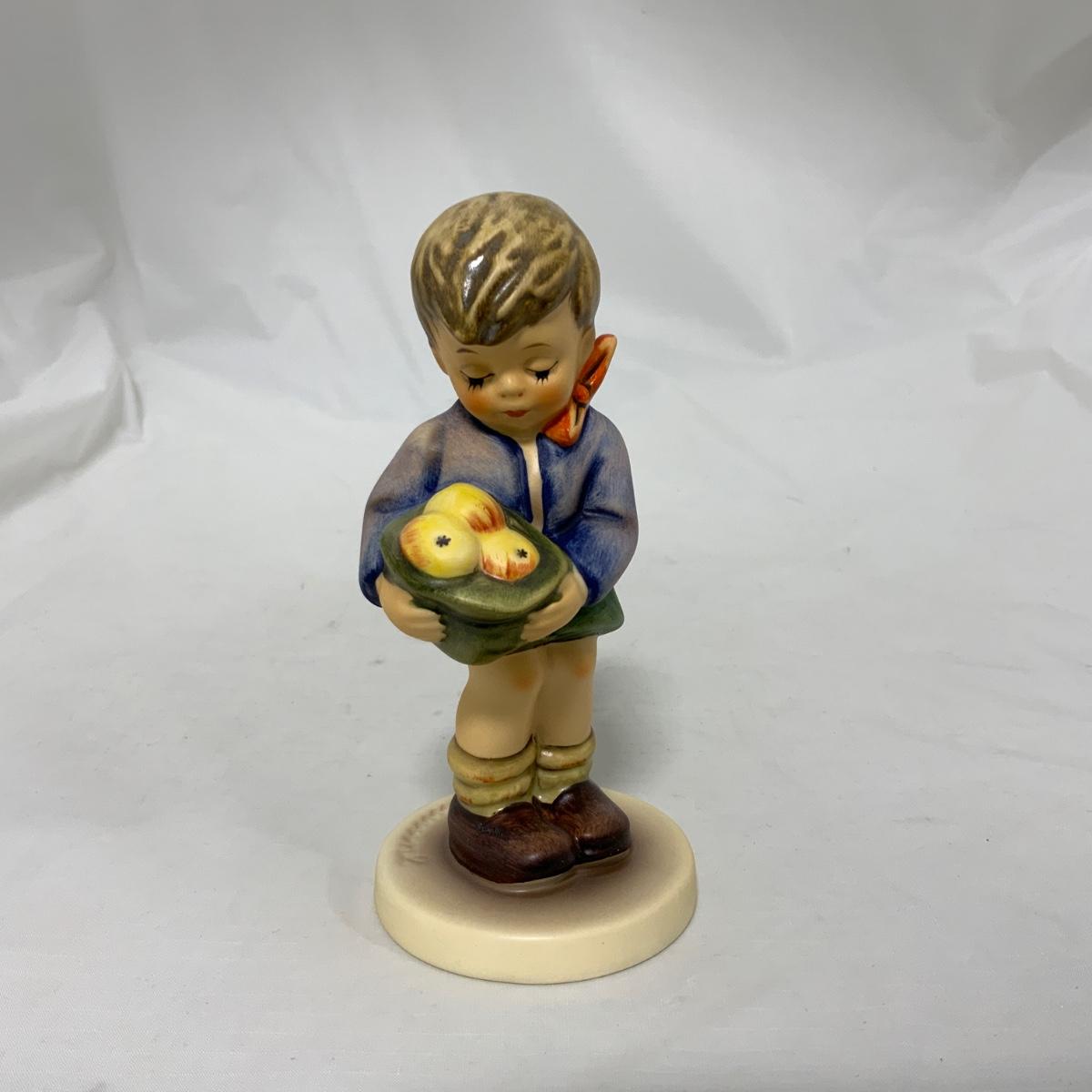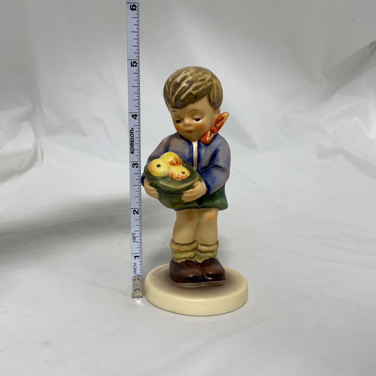 Does he look a little disappointed about the fruit? Gift From A Friend, Hum 485. TMK-7. Please see photos for details and condition. No Cracks, Chips or Crazing noted. ::: Shipping is available on this lot. If you require shipping you must let us know at the close of the auction. We will coordinate with you after the item has been won. Shipping fees will include insurance up to or exceeding the value of all items being mailed. If you have any questions regarding this lot please contact the auctioneer either via this website, by direct email or by phone. PICK UP TIMES and other important information can be found in the TERMS and DESCRIPTION of the auction. Please take a look for pertinent information. Thanks!