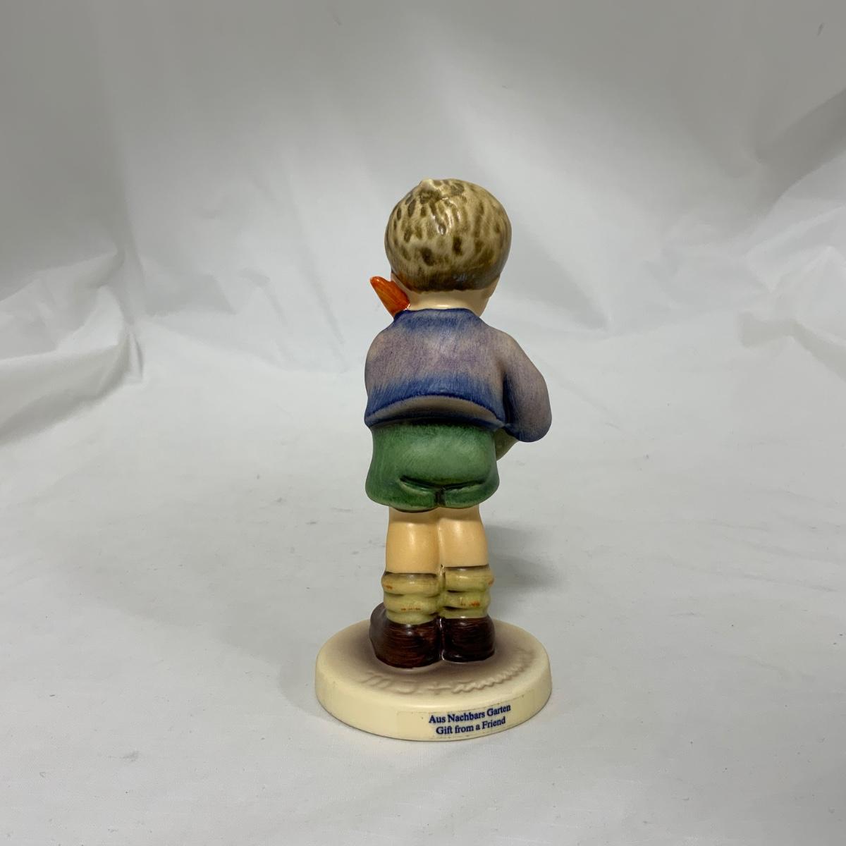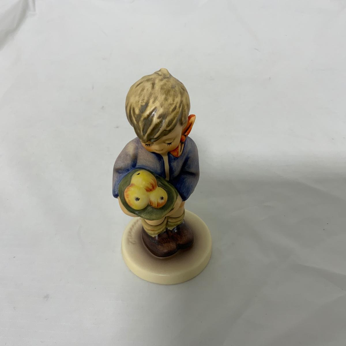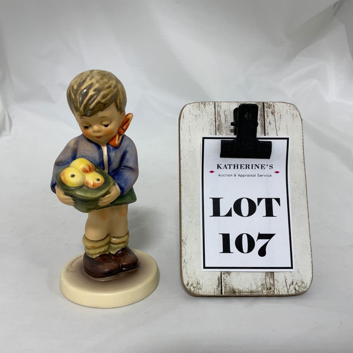 Does he look a little disappointed about the fruit? Gift From A Friend, Hum 485. TMK-7. Please see photos for details and condition. No Cracks, Chips or Crazing noted. ::: Shipping is available on this lot. If you require shipping you must let us know at the close of the auction. We will coordinate with you after the item has been won. Shipping fees will include insurance up to or exceeding the value of all items being mailed. If you have any questions regarding this lot please contact the auctioneer either via this website, by direct email or by phone. PICK UP TIMES and other important information can be found in the TERMS and DESCRIPTION of the auction. Please take a look for pertinent information. Thanks!