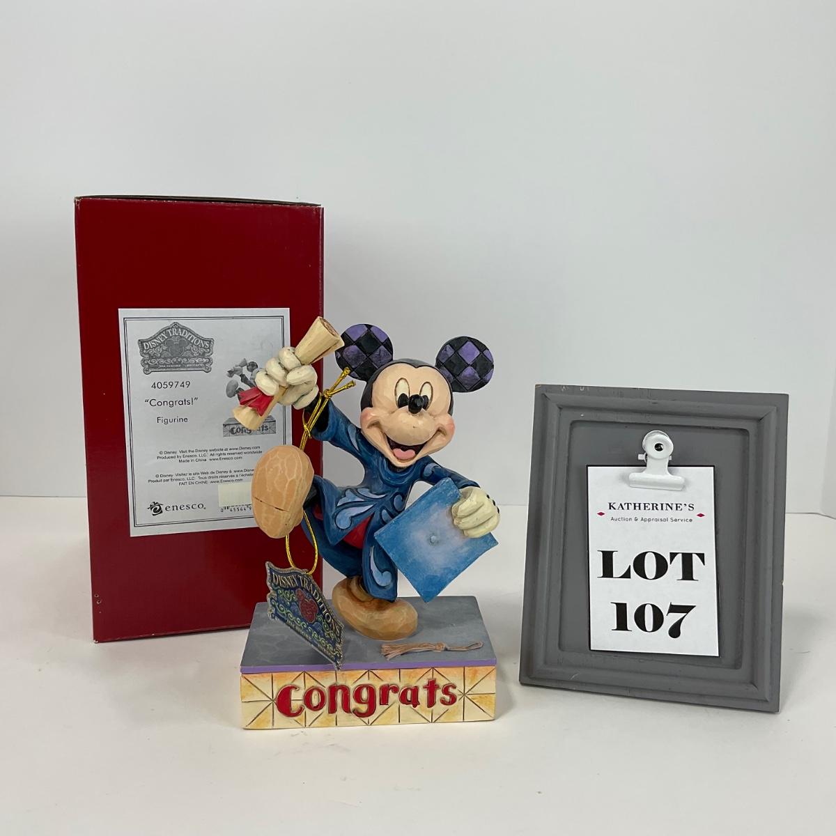 One Jim Shore Enesco “Congrats” figure. Appears to be in great shape, does come with its box. Please see photos for details and condition. Any condition statement is given as a courtesy to a client, is an opinion, and should not be treated as a statement of fact. Reference to condition written, oral or within a condition report shall not be regarded as a full account of condition and may not include all defects, alterations, or restorations. Absence of a condition report does not imply a lot is flawless or lacking imperfections or damage. Katherine’s Auction & Appraisal Service shall have no responsibility for any error or omission. Returns shall not be accepted on the basis of condition. ::: Shipping is available on this lot. If you require shipping you must let us know at the close of the auction. We will coordinate with you after the item has been won. Shipping fees will include insurance up to or exceeding the value of all items being mailed. If you have any questions regarding this lot please contact the auctioneer either via this website, by direct email or by phone. PICK UP TIMES and other important information can be found in the TERMS and DESCRIPTION of the auction. Please take a look for pertinent information. Thanks!