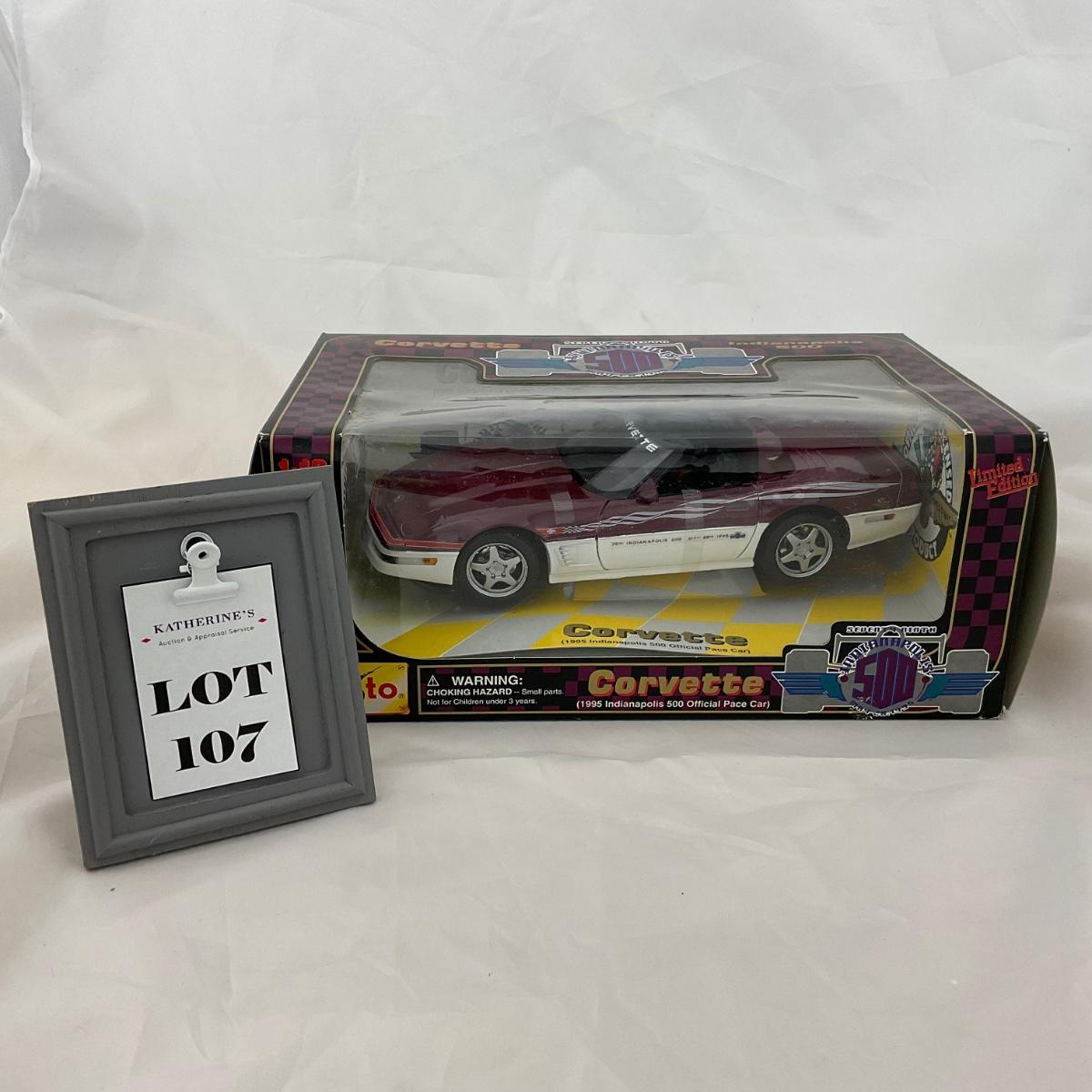 One NASCAR die cast 1:18 scale 1995 Indianapolis 500 Official Pace Car Corvette in box. Please see photos for details and condition. ::: Shipping is available on this lot. If you require shipping you must let us know at the close of the auction. We will coordinate with you after the item has been won. Shipping fees will include insurance up to or exceeding the value of all items being mailed. If you have any questions regarding this lot please contact the auctioneer either via this website, by direct email or by phone. PICK UP TIMES and other important information can be found in the TERMS and DESCRIPTION of the auction. Please take a look for pertinent information. Thanks!