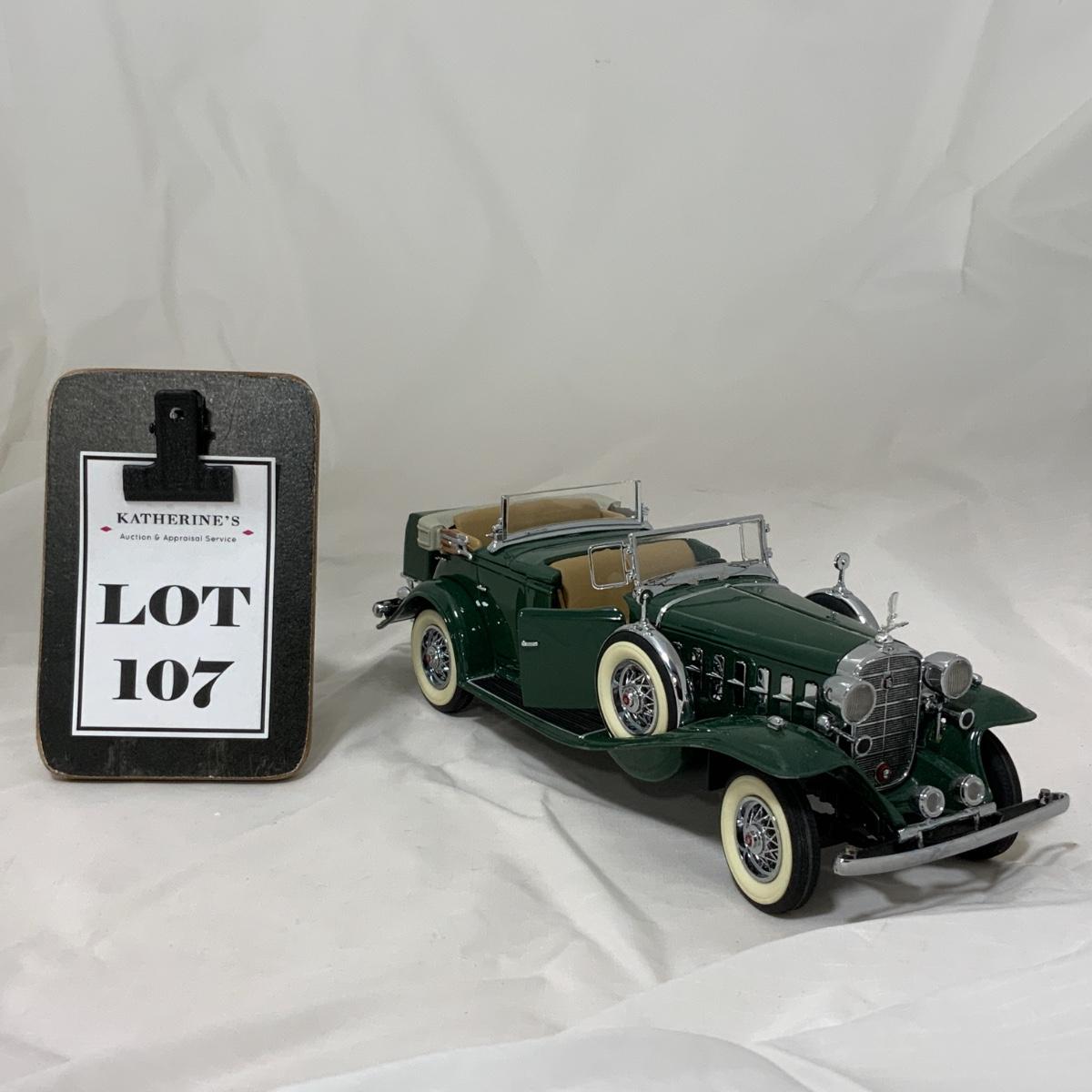 From the Estate of Peter Radovanovich: Danbury Mint Die-Cast 1932 Cadillac V-16. Car appears to be complete and looks excellent! Car does not come with original box. Please see photos for details and condition. ::: Shipping is available on this lot. If you require shipping you must let us know at the close of the auction. We will coordinate with you after the item has been won. Shipping fees will include insurance up to or exceeding the value of all items being mailed. If you have any questions regarding this lot please contact the auctioneer either via this website, by direct email or by phone. PICK UP TIMES and other important information can be found in the TERMS and DESCRIPTION of the auction. Please take a look for pertinent information. Thanks!