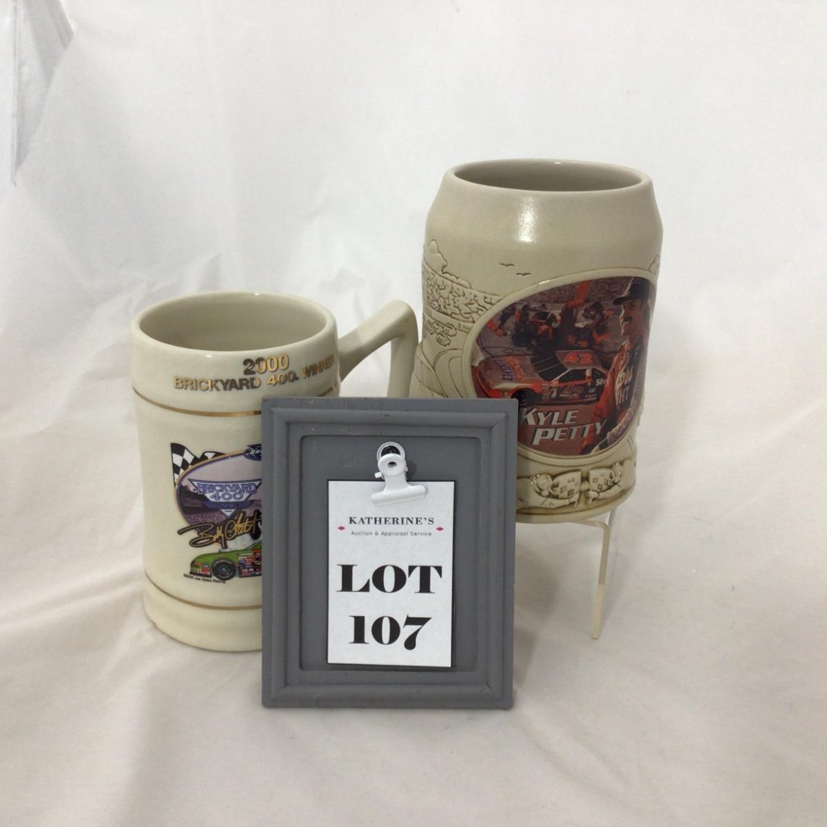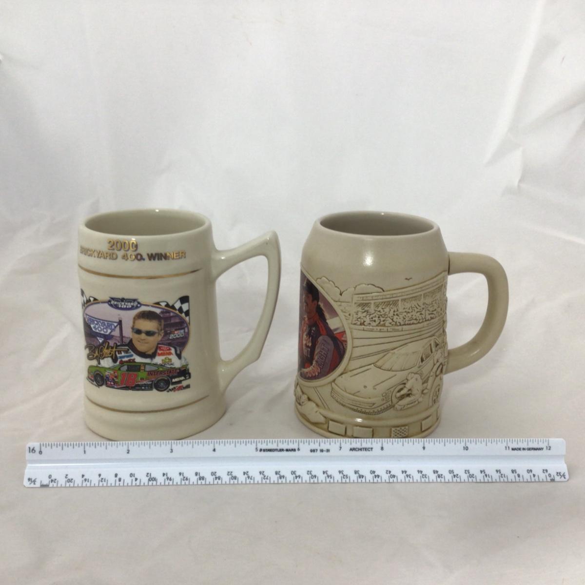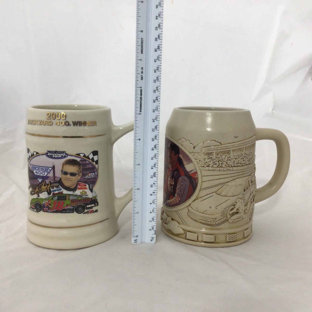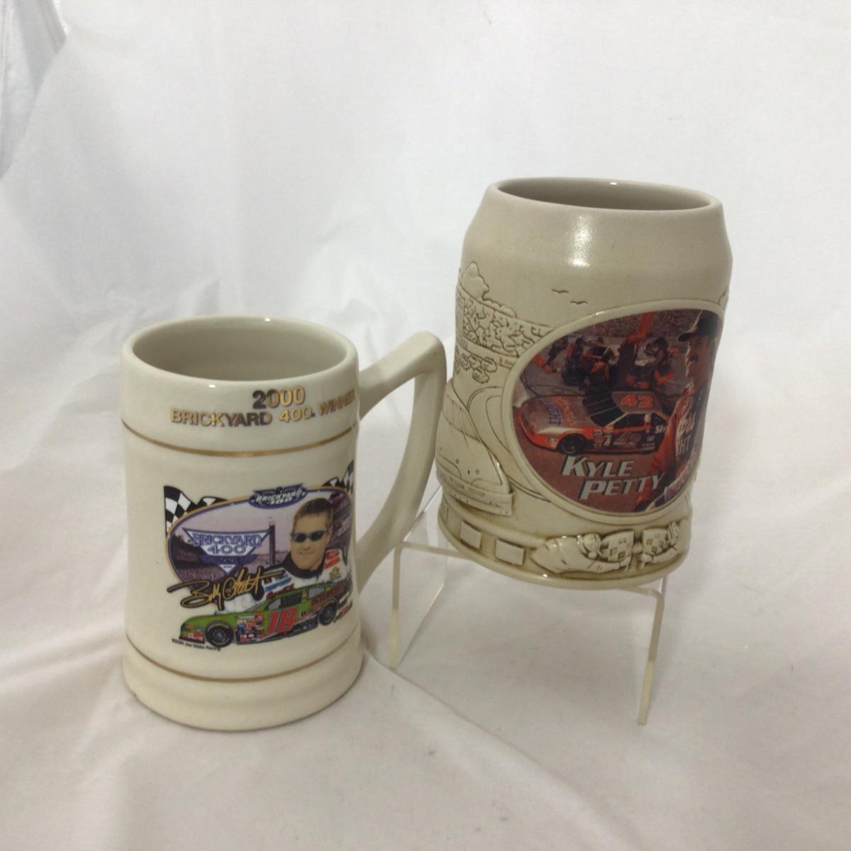 Two NASCAR steins one being Kyle Busch the other Kyle Petty. Please see photos for details and condition. ::: Shipping is available on this lot. If you require shipping you must let us know at the close of the auction. We will coordinate with you after the item has been won. Shipping fees will include insurance up to or exceeding the value of all items being mailed. If you have any questions regarding this lot please contact the auctioneer either via this website, by direct email or by phone. PICK UP TIMES and other important information can be found in the TERMS and DESCRIPTION of the auction. Please take a look for pertinent information. Thanks!