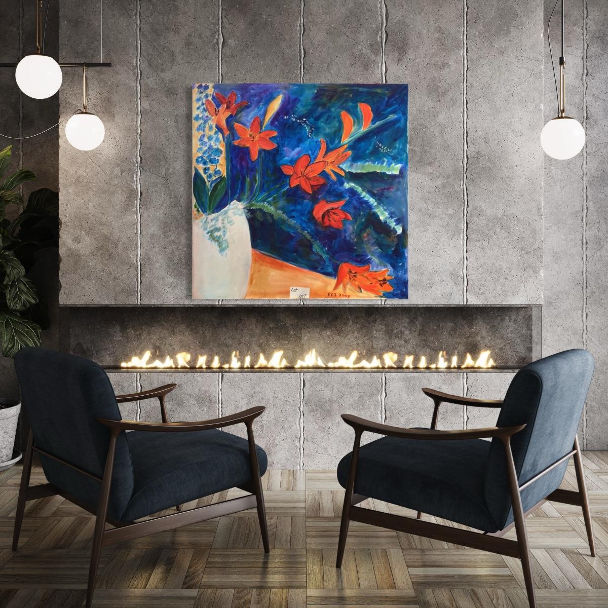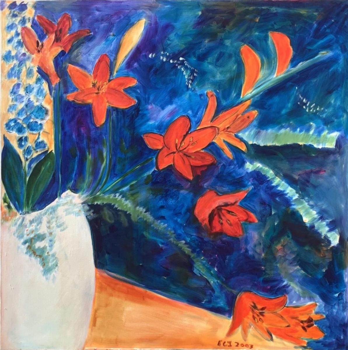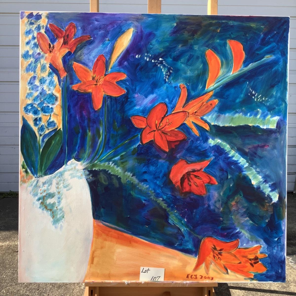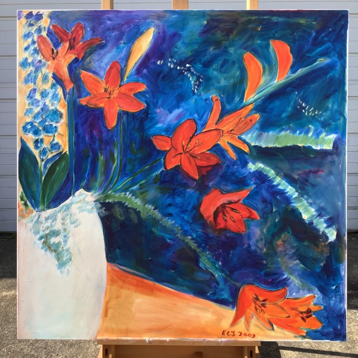 107 Original Oil " Lillies & Delphinium" by Ellen Into