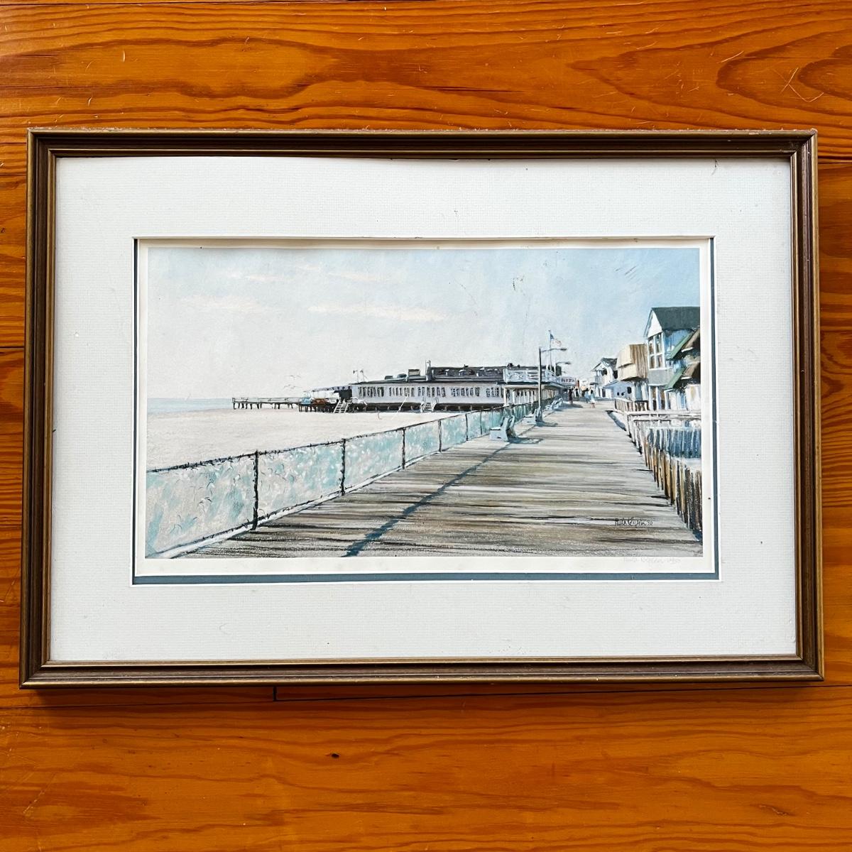 Art is slightly warped and has some spots, it is framed and matted with no glass.