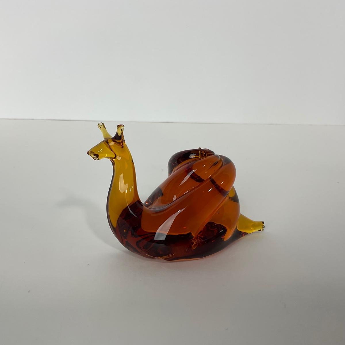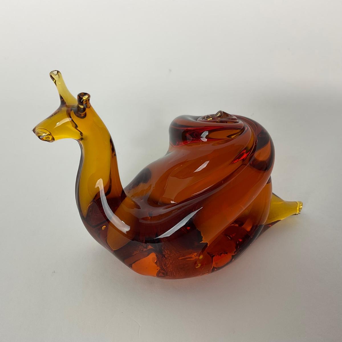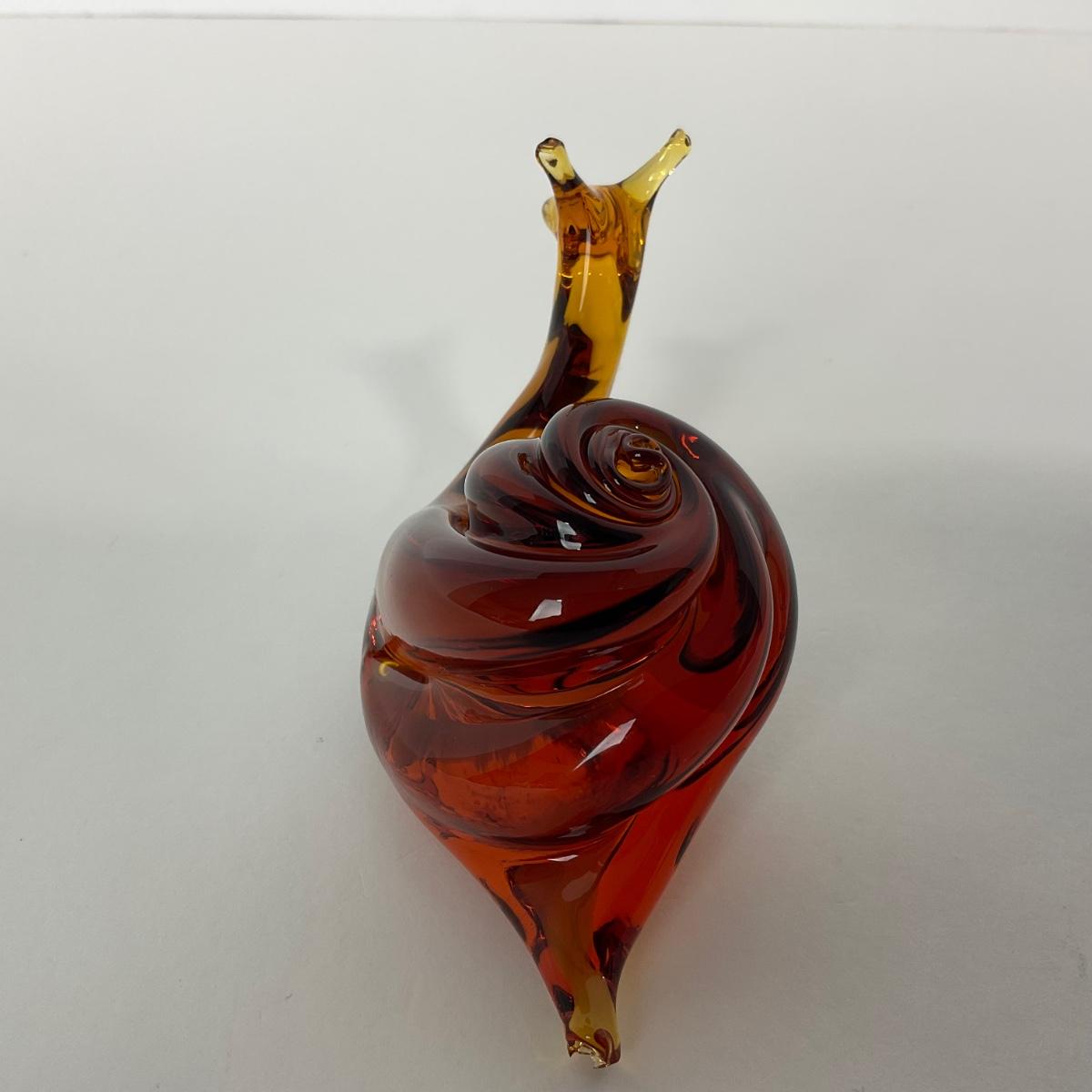 One amber colored Pilgrim snail paperweight. This piece does have a small chip on the tail but is in otherwise great shape. 2 1/2 inches tall by 4 1/2 inches wide. Please see photos for details and condition. Any condition statement is given as a courtesy to a client, is an opinion, and should not be treated as a statement of fact. Reference to condition written, oral or within a condition report shall not be regarded as a full account of condition and may not include all defects, alterations, or restorations. Absence of a condition report does not imply a lot is flawless or lacking imperfections or damage. Katherine’s Auction & Appraisal Service shall have no responsibility for any error or omission. Returns shall not be accepted on the basis of condition. ::: Shipping is available on this lot. If you require shipping you must let us know at the close of the auction. We will coordinate with you after the item has been won. Shipping fees will include insurance up to or exceeding the value of all items being mailed. If you have any questions regarding this lot please contact the auctioneer either via this website, by direct email or by phone. PICK UP TIMES and other important information can be found in the TERMS and DESCRIPTION of the auction. Please take a look for pertinent information. Thanks!