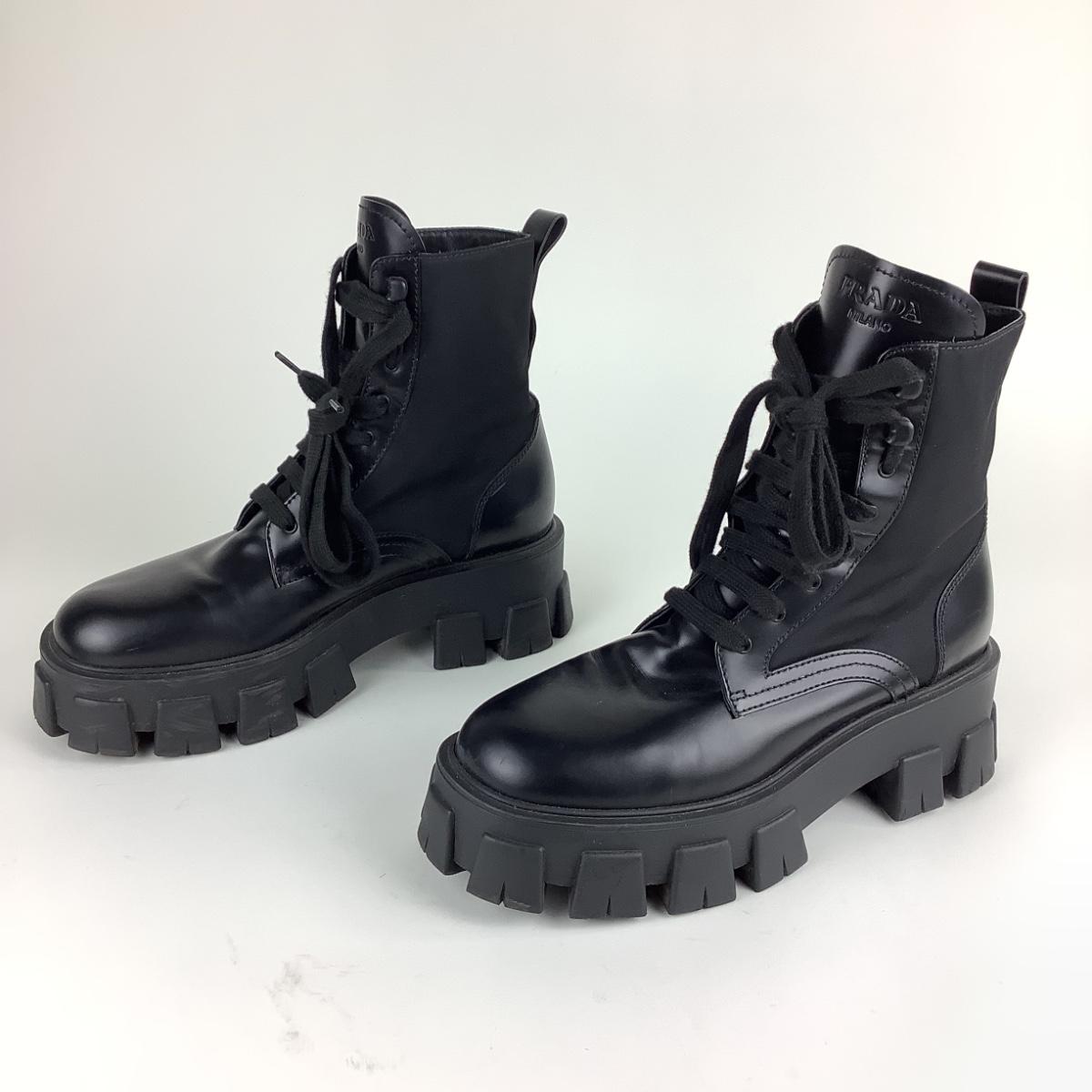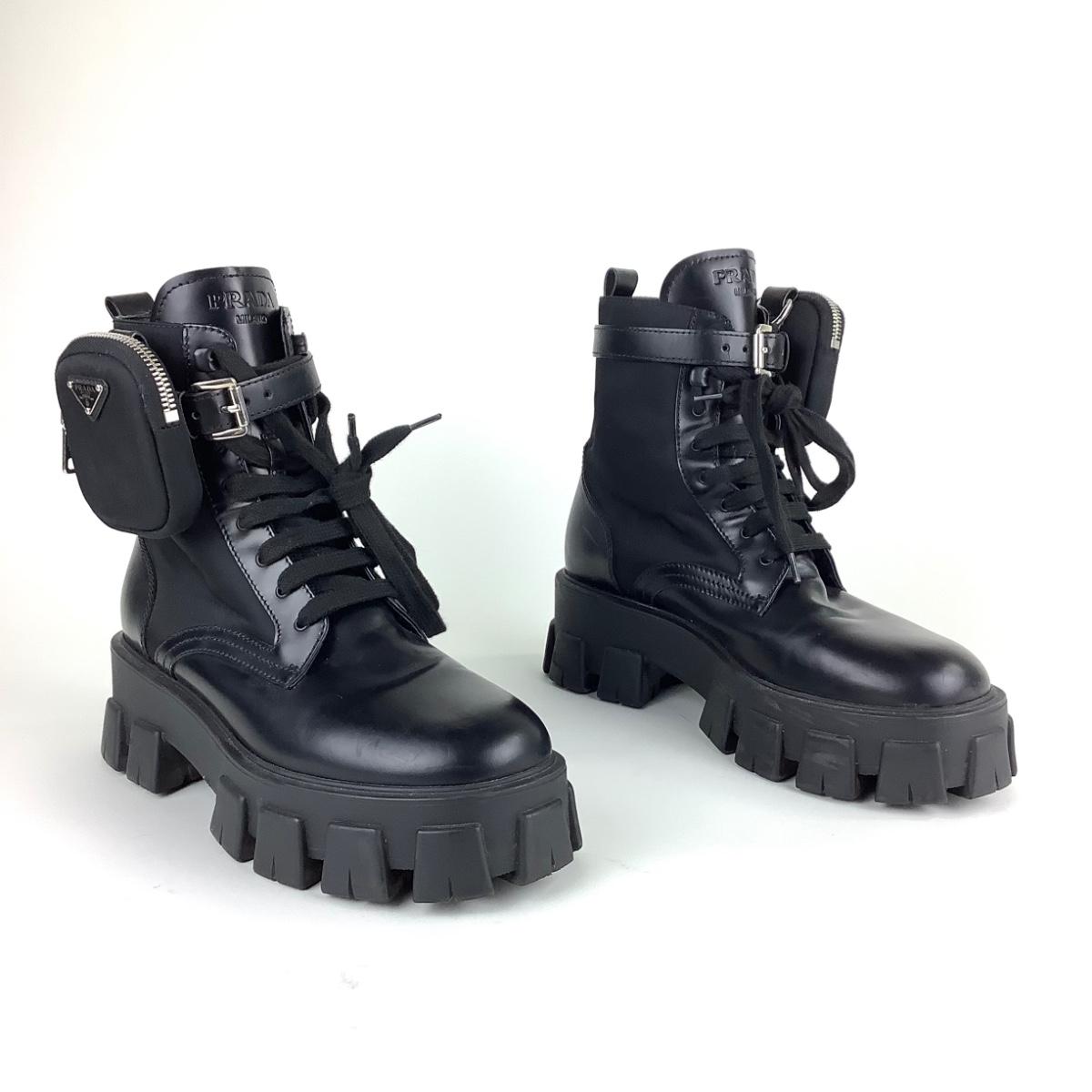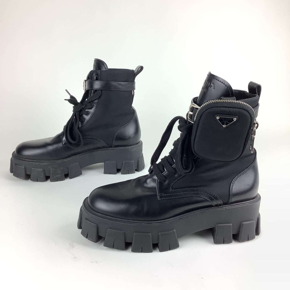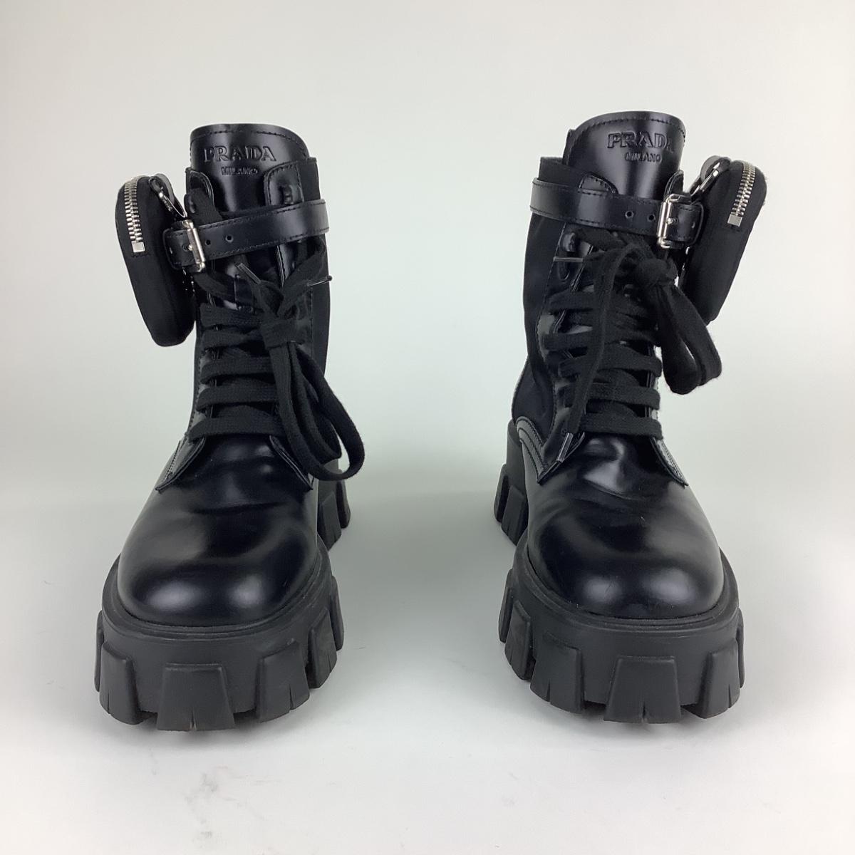 107 PRADA Monolith Leather & Re-Nylon Boots with Ankle Pouches