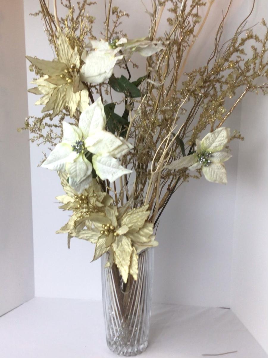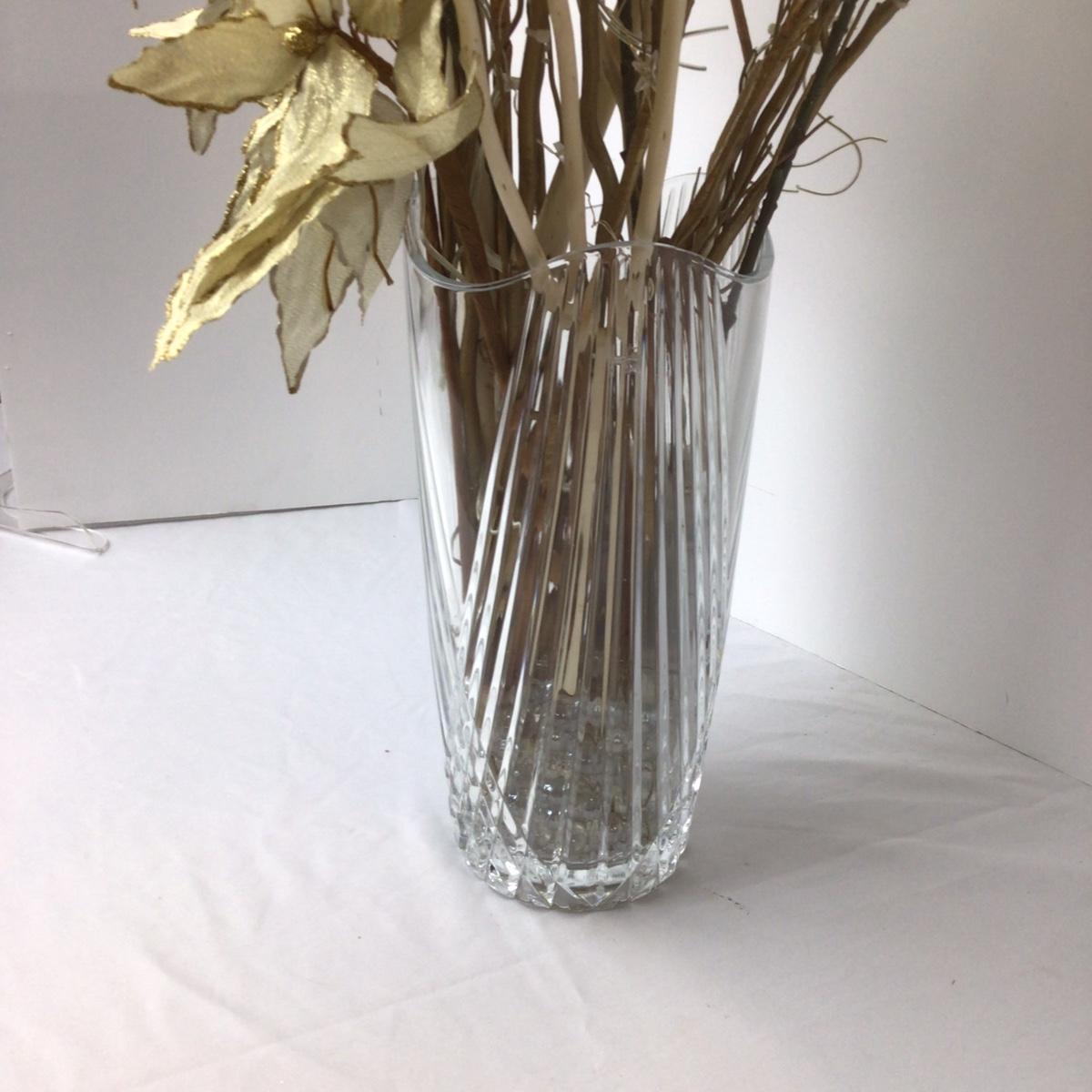 Large 24” glass vase with gold tone floral spray.