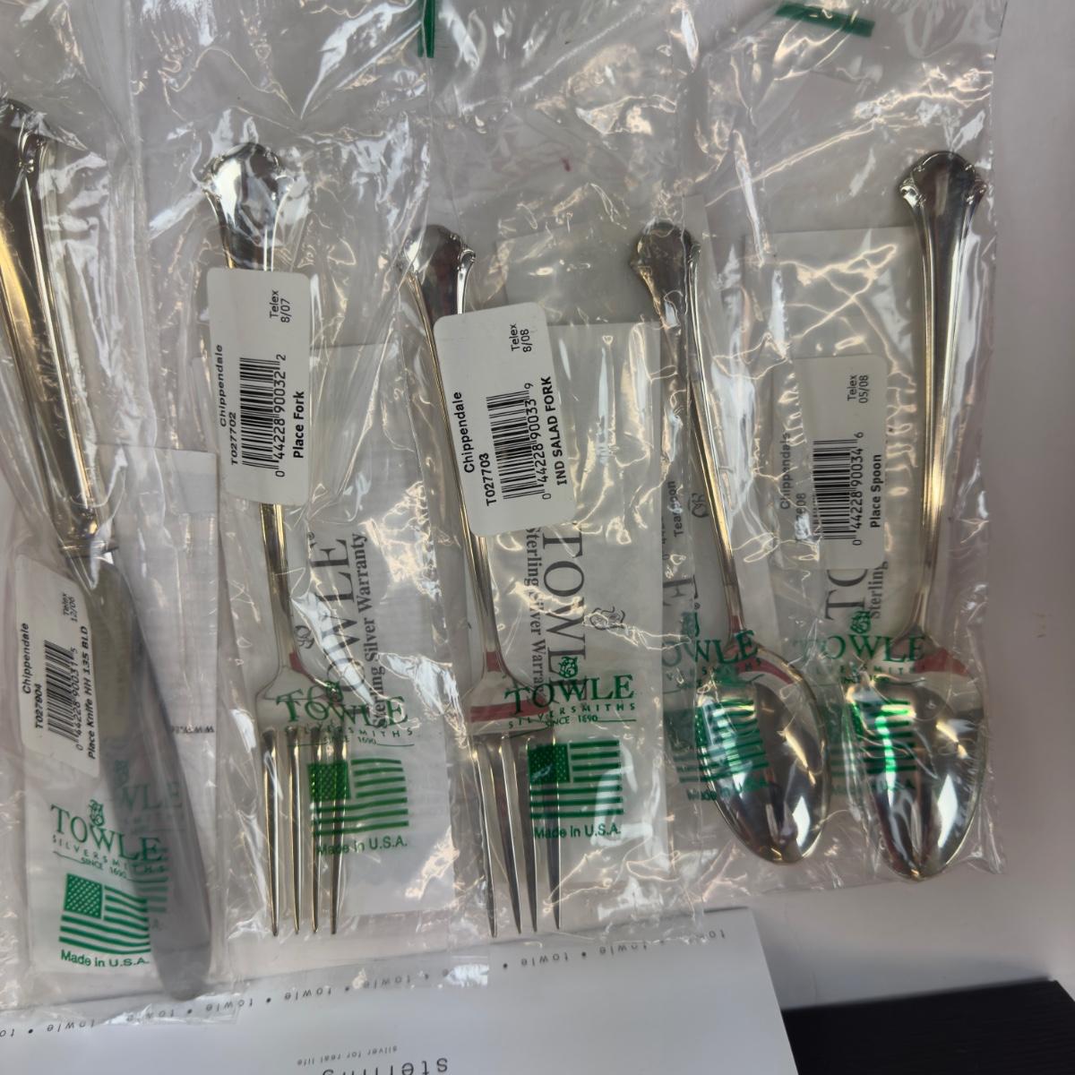 1071 New Towle 365 Silver Flatware Chippendale 5 piece place setting