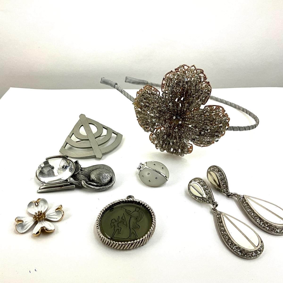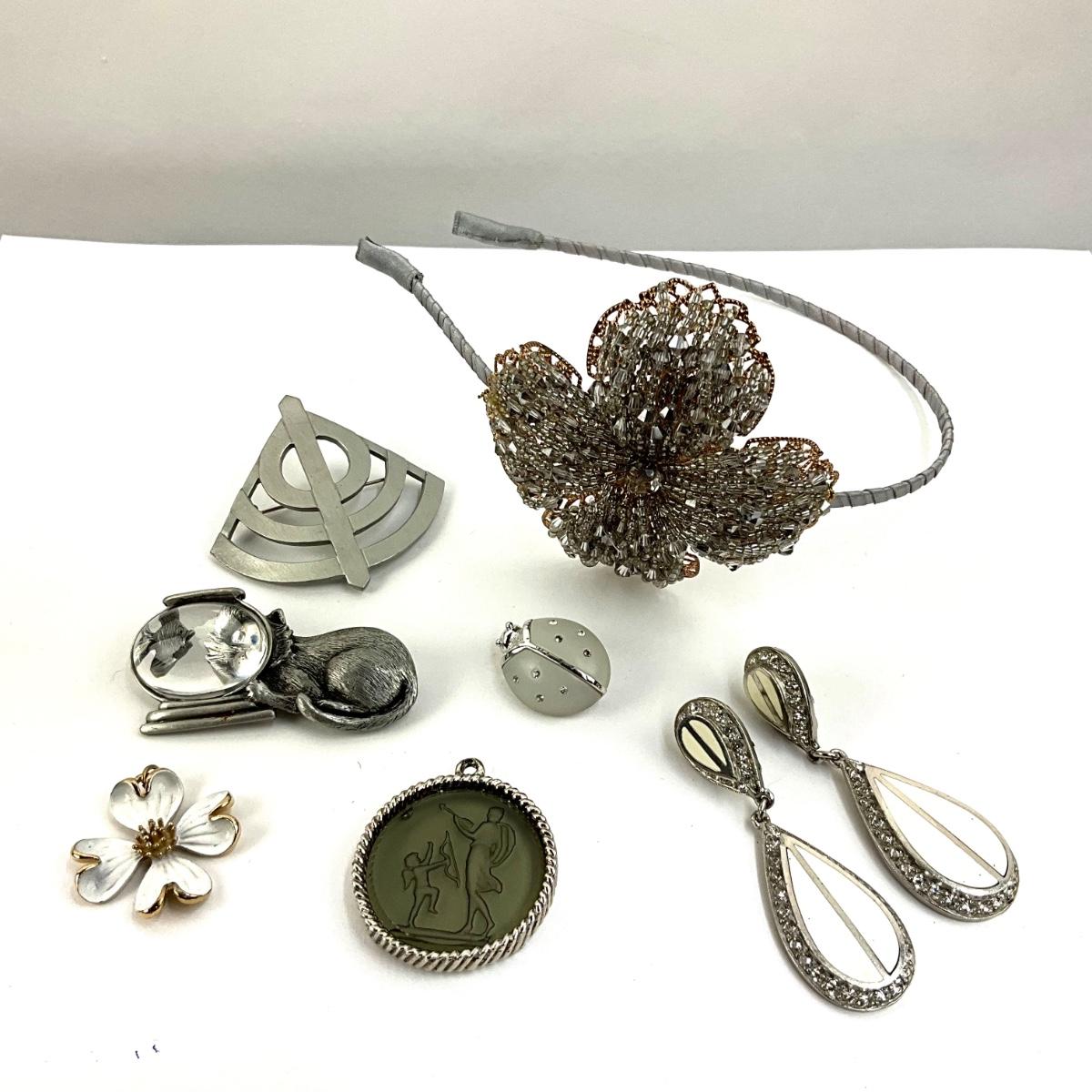 1071 Vintage Silvertone Jewelry and Beaded Headband Lot