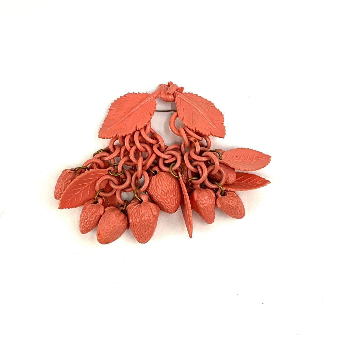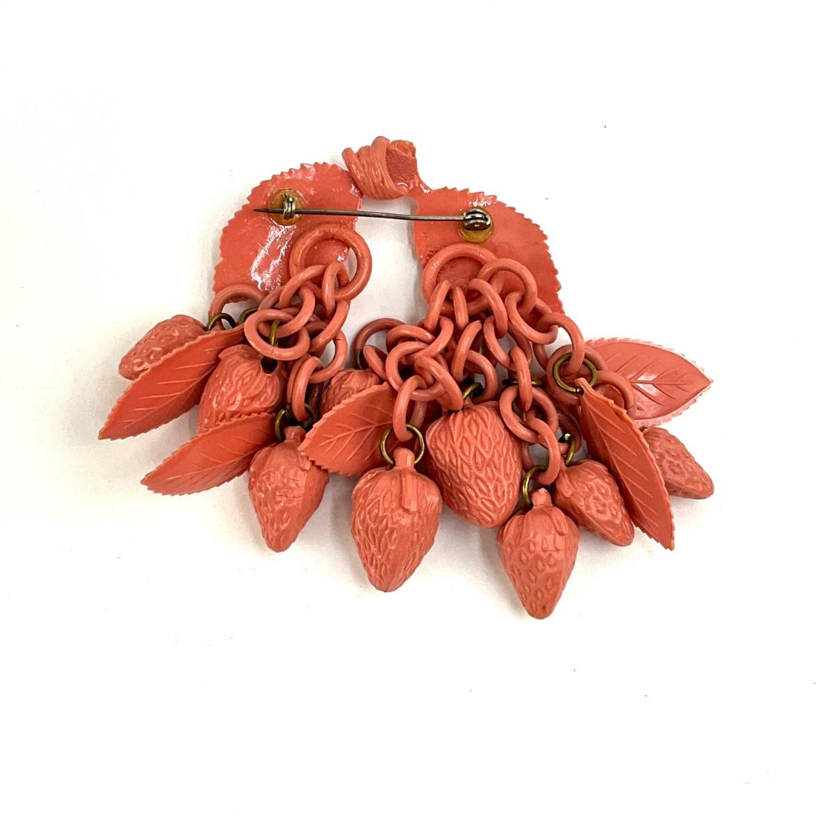 1074 Art Deco Pink Celluloid Strawberry Brooch